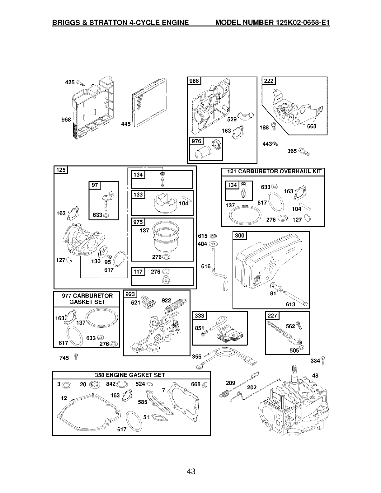 163 272653s *O:1: Gasket-Air Cleaner 668 493823 * Spacer (Includes 2)