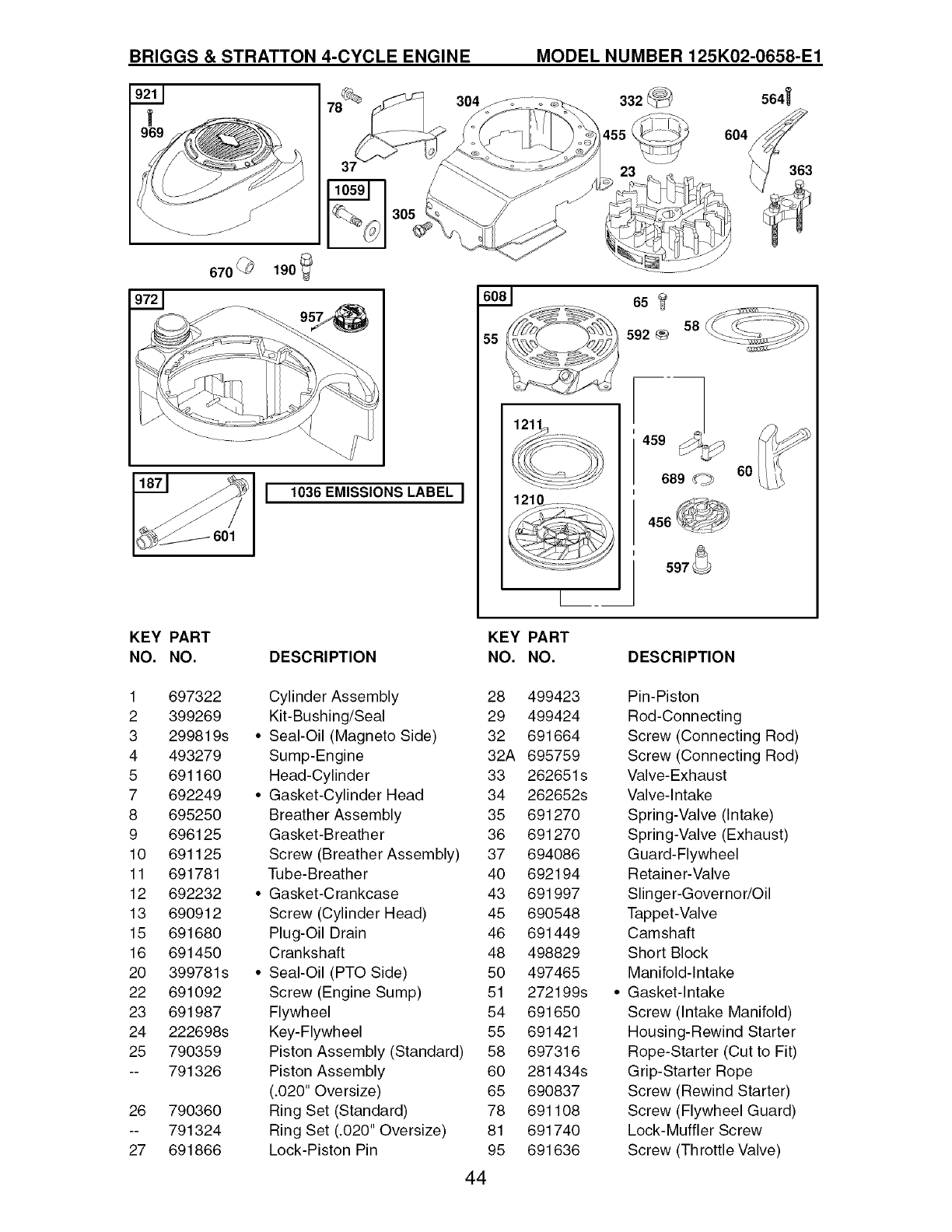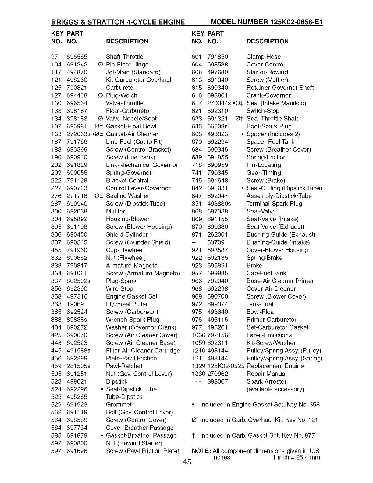 125 790821 Carburetor 615 690340 Retainer-Governor Shaft