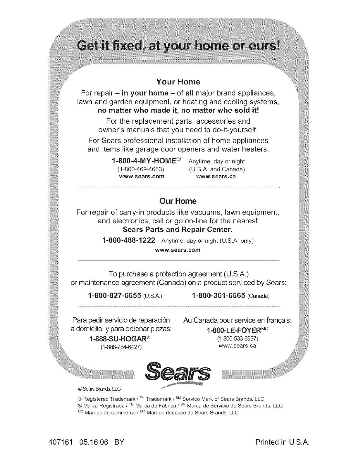 ® Marca Registrada /TMMarca de Fabrica /SMMarca de Servicio de Sears Brands, LLC