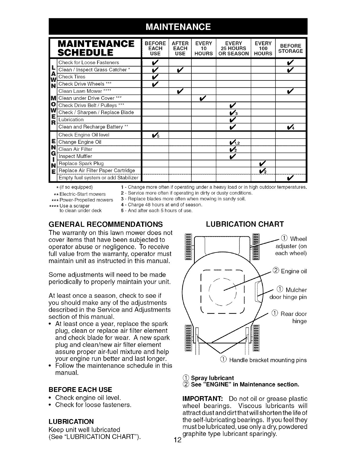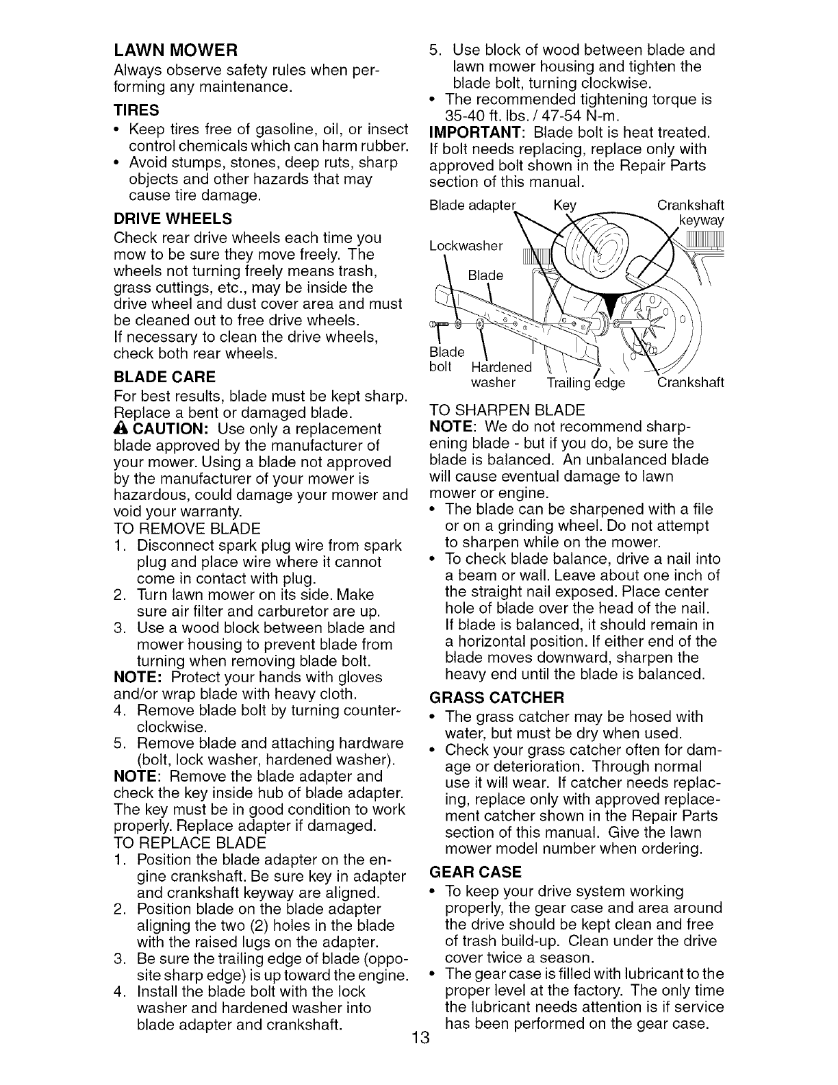 crackshafts and the failure to assemble, operate or maintain this Lawn Mower