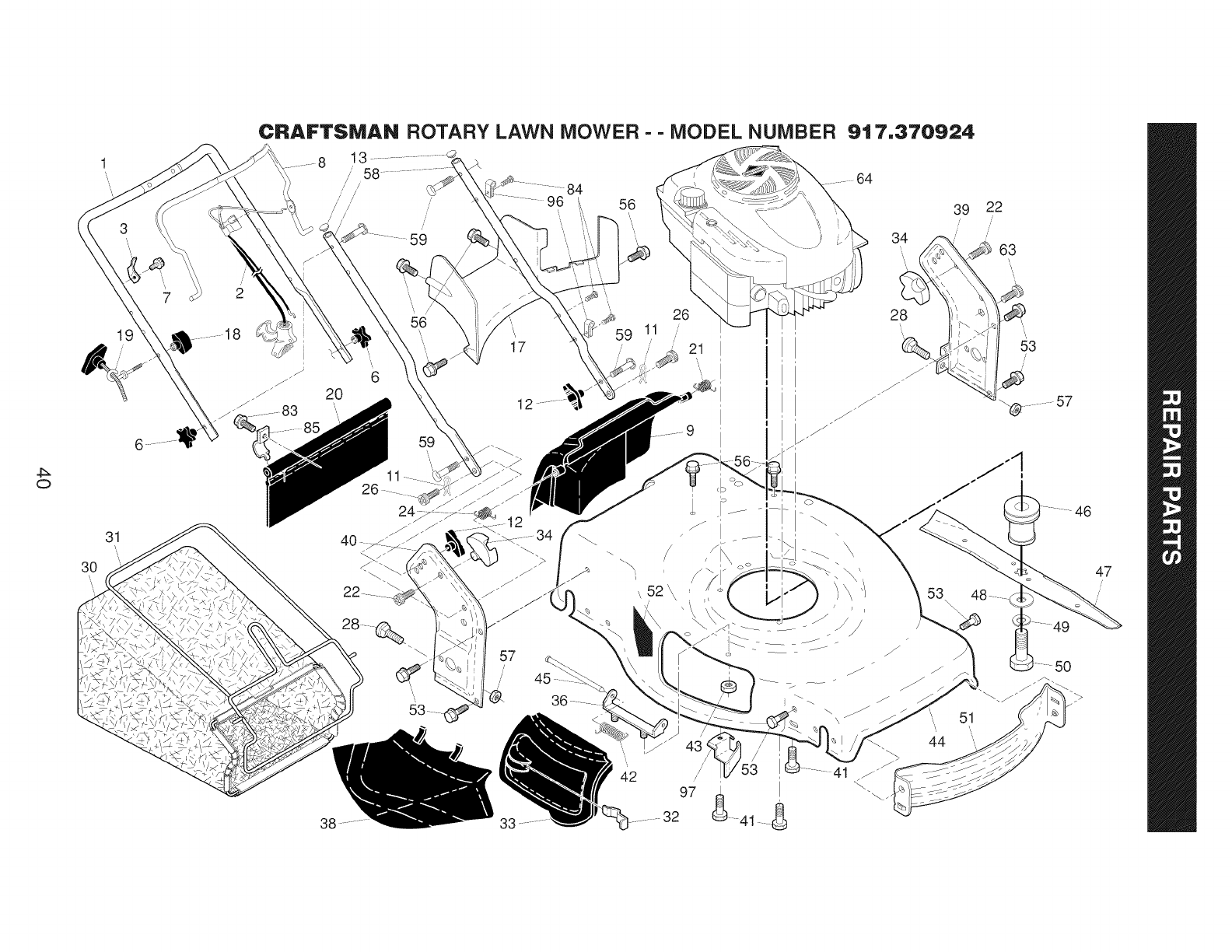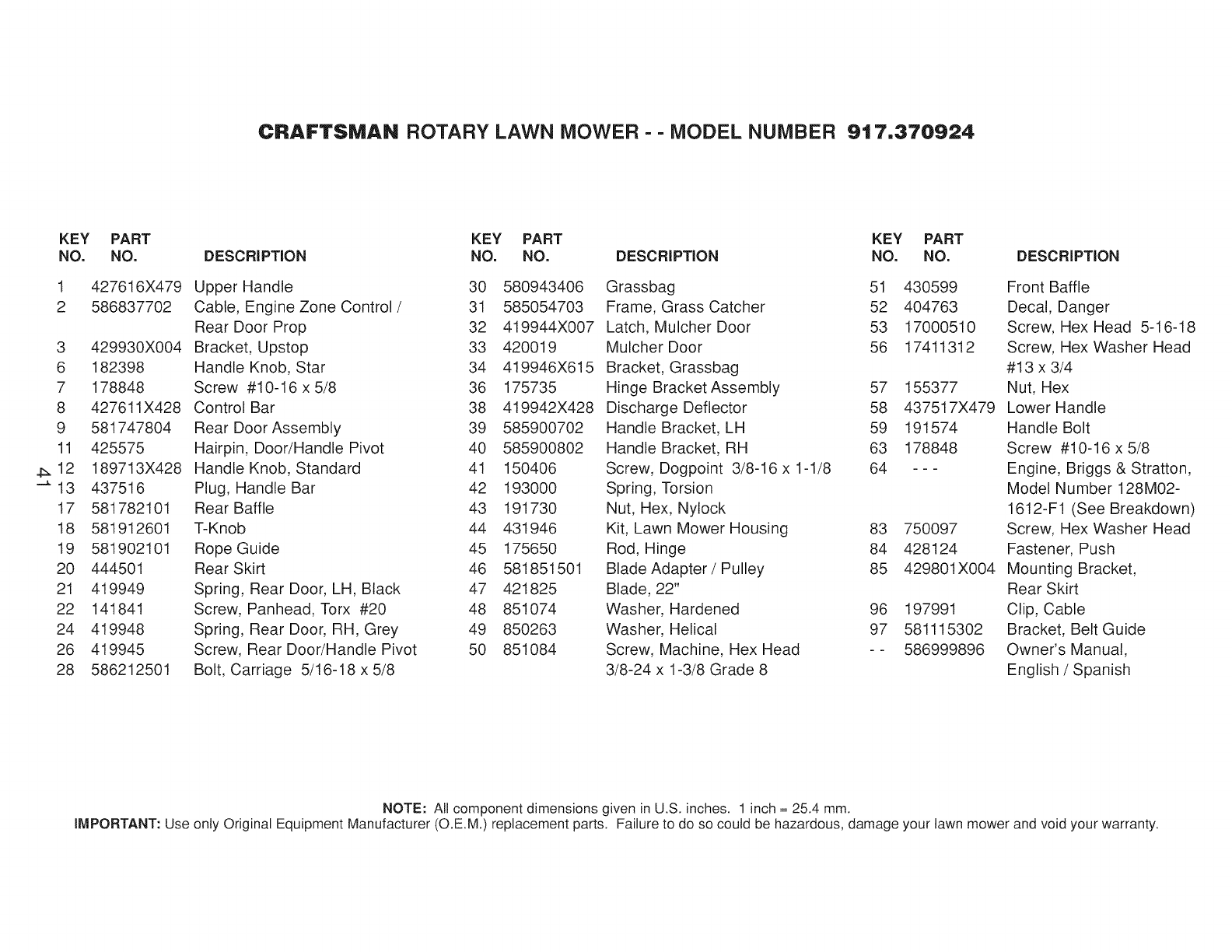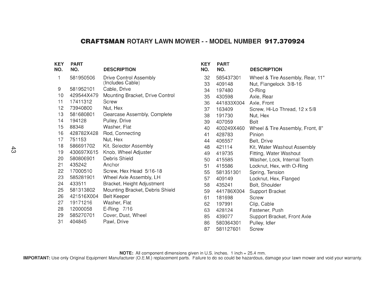 User Manual: Craftsman 917370924 917370924 CRAFTSMAN MOWER - Manuals and Guides View the owners manual for your CRAFTSMAN MOWER #917370924. Home:Lawn & Garden Parts:Craftsman Parts:Craftsman MOWER Manual