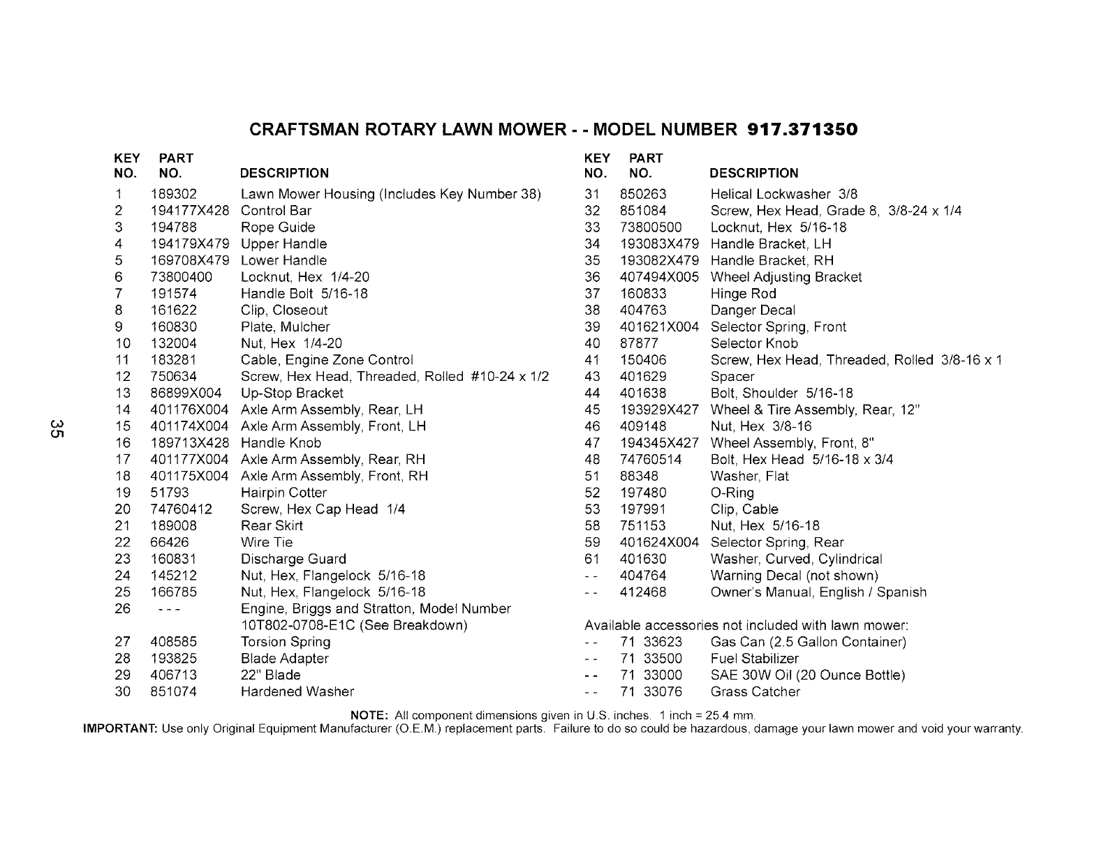 Craftsman 917371350 User Manual MOWER Manuals And Guides L0702185