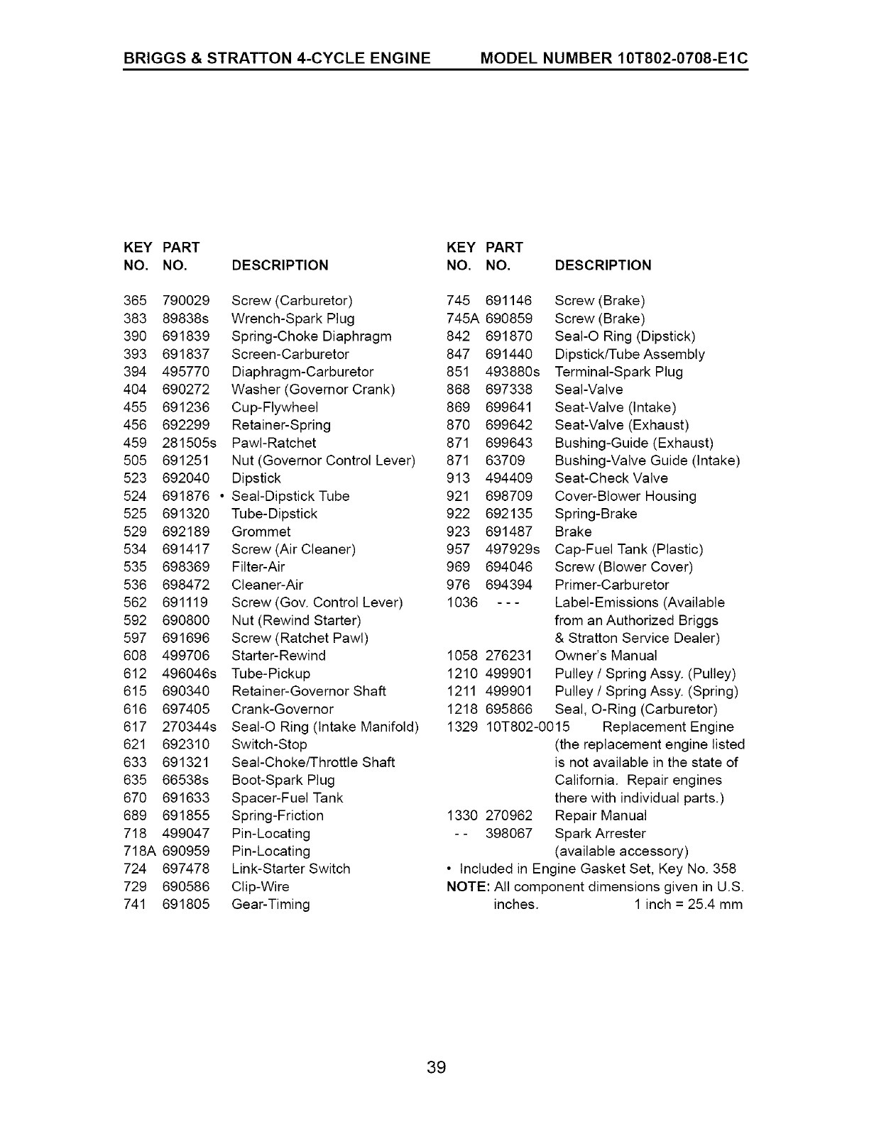 562 691119 Screw (Gov. Control Lever) 1036 ---