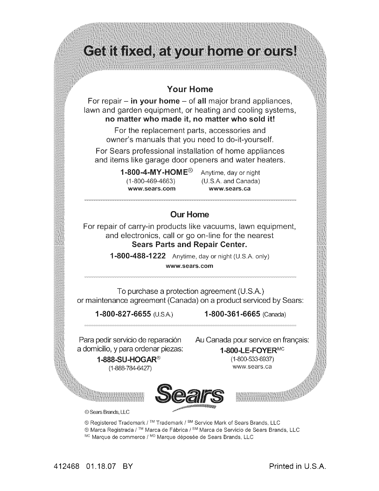 ® Registered Trademark /TMTrademark /SM Service Mark of Sears Brands, LLC