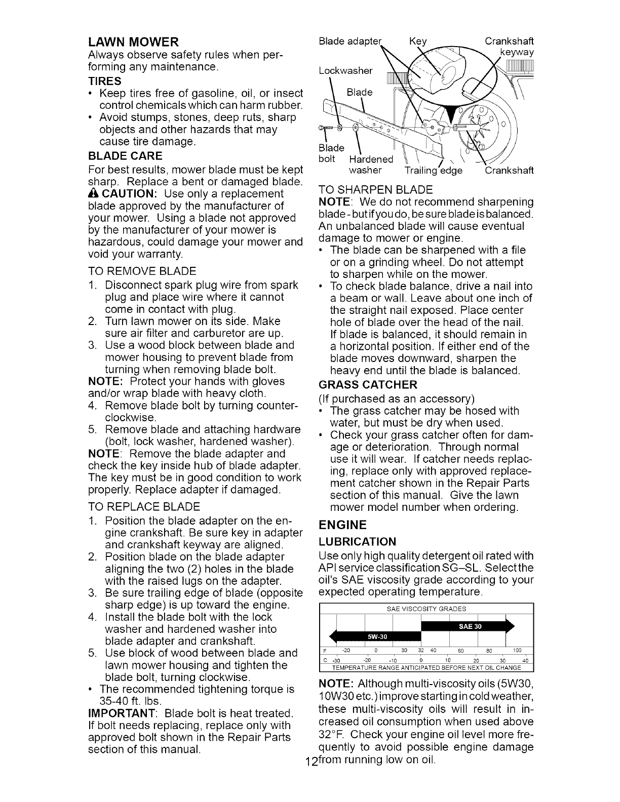 crackshafts and the failure to assemble, operate or maintain this Lawn Mower