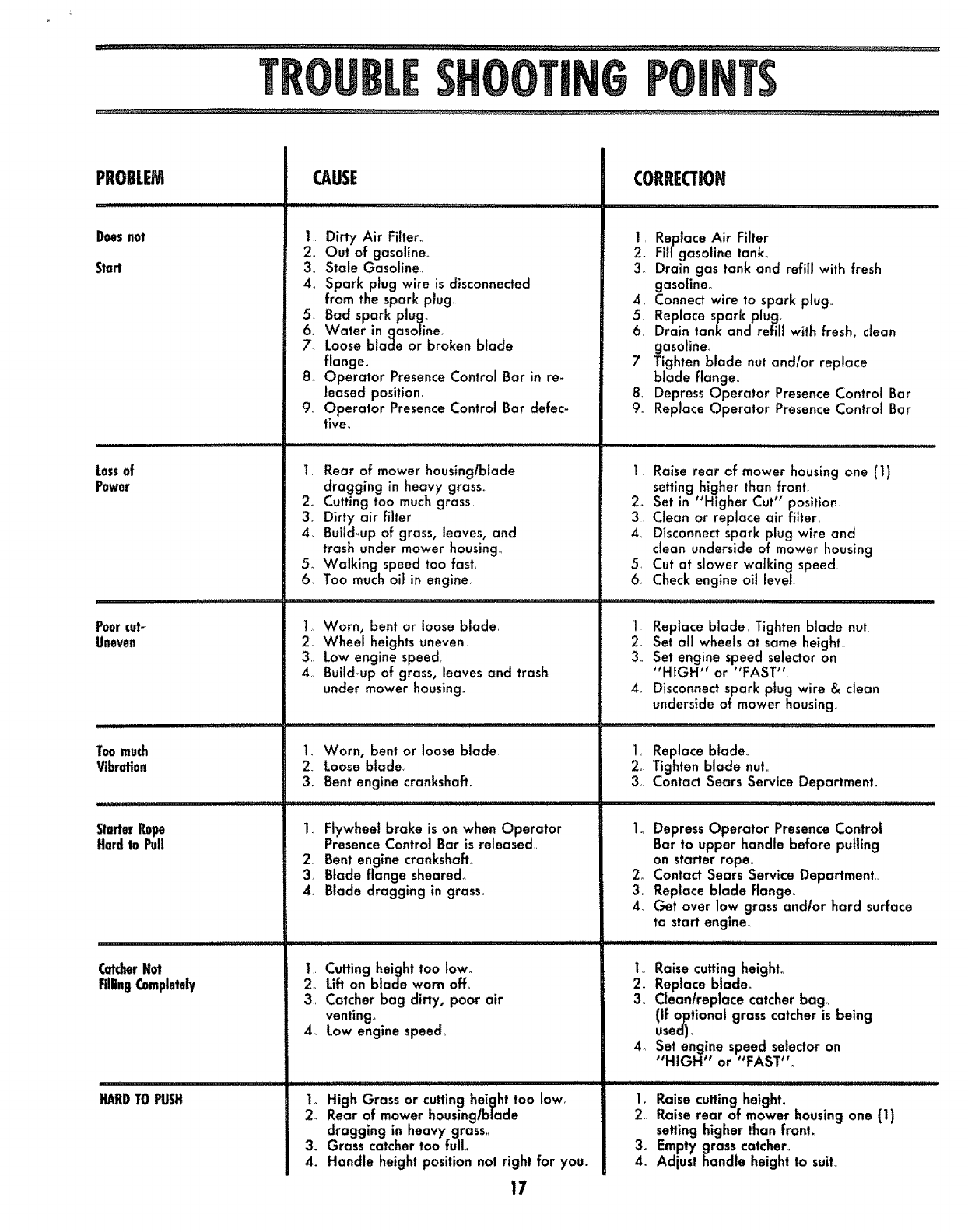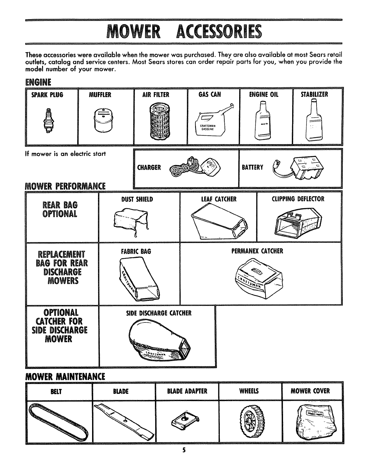All parts listed herein may be ordered through Sears,
