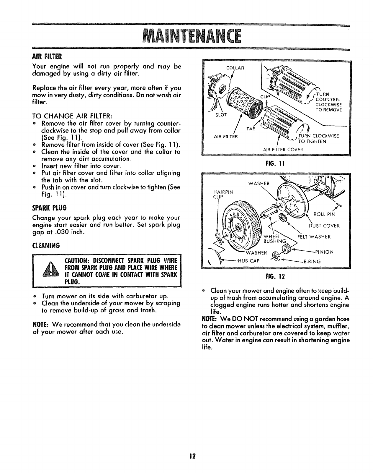_ CAUTION: ALWAYS DISCONNECT SPARK PLUG WIRE AND PLACE WIRE _