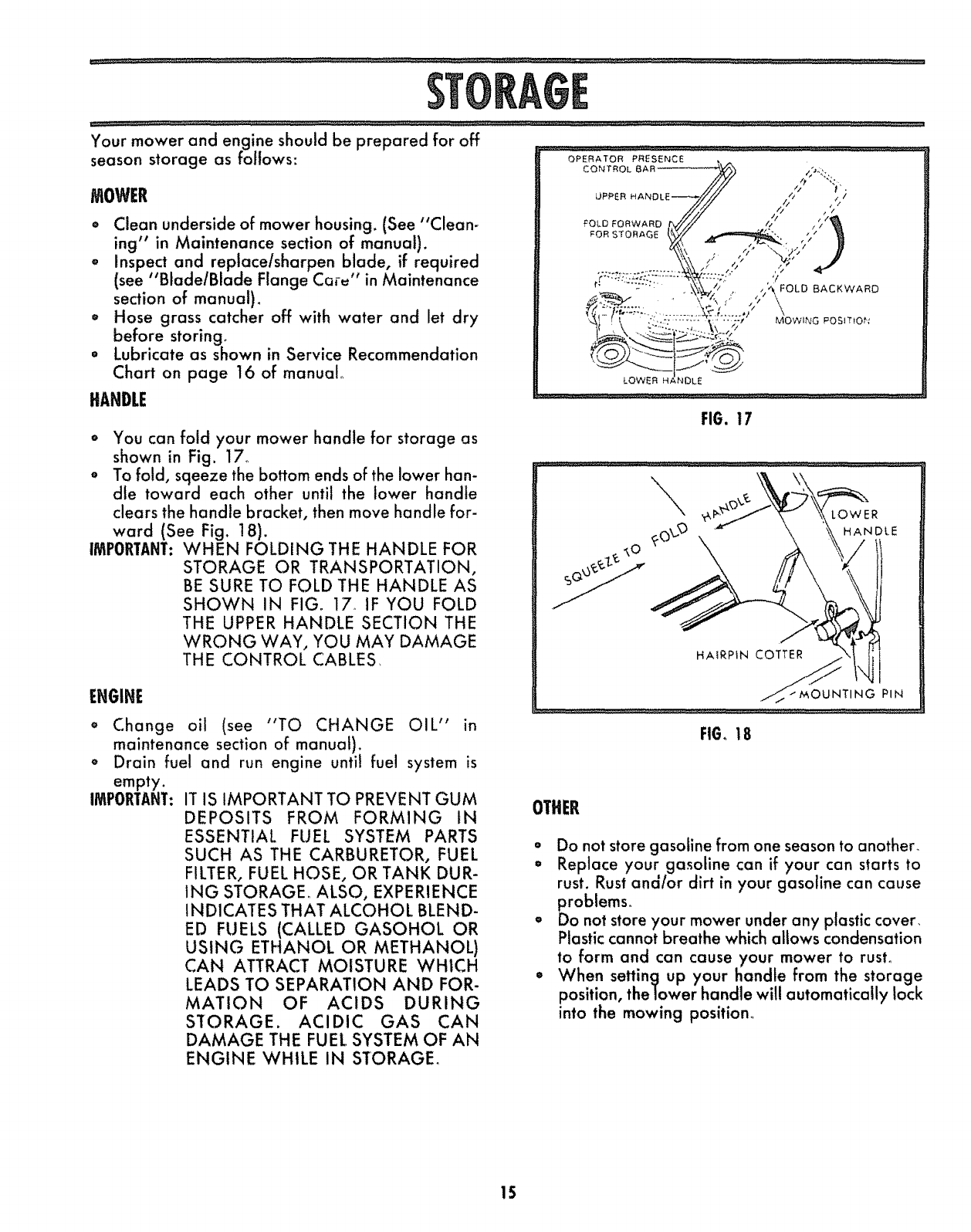 transporting or storing your mower alter" the