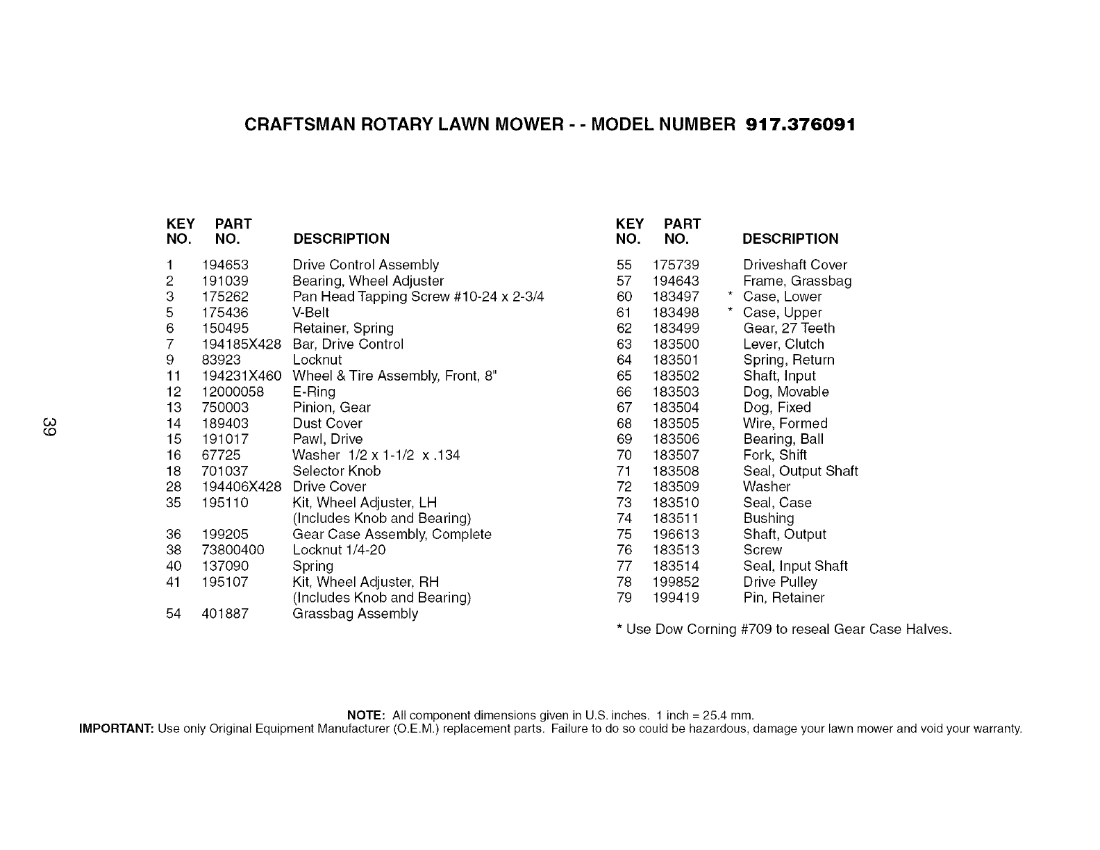 User Manual: Craftsman 917376091 917376091 CRAFTSMAN MOWER - Manuals and Guides View the owners manual for your CRAFTSMAN MOWER #917376091. Home:Lawn & Garden Parts:Craftsman Parts:Craftsman MOWER Manual