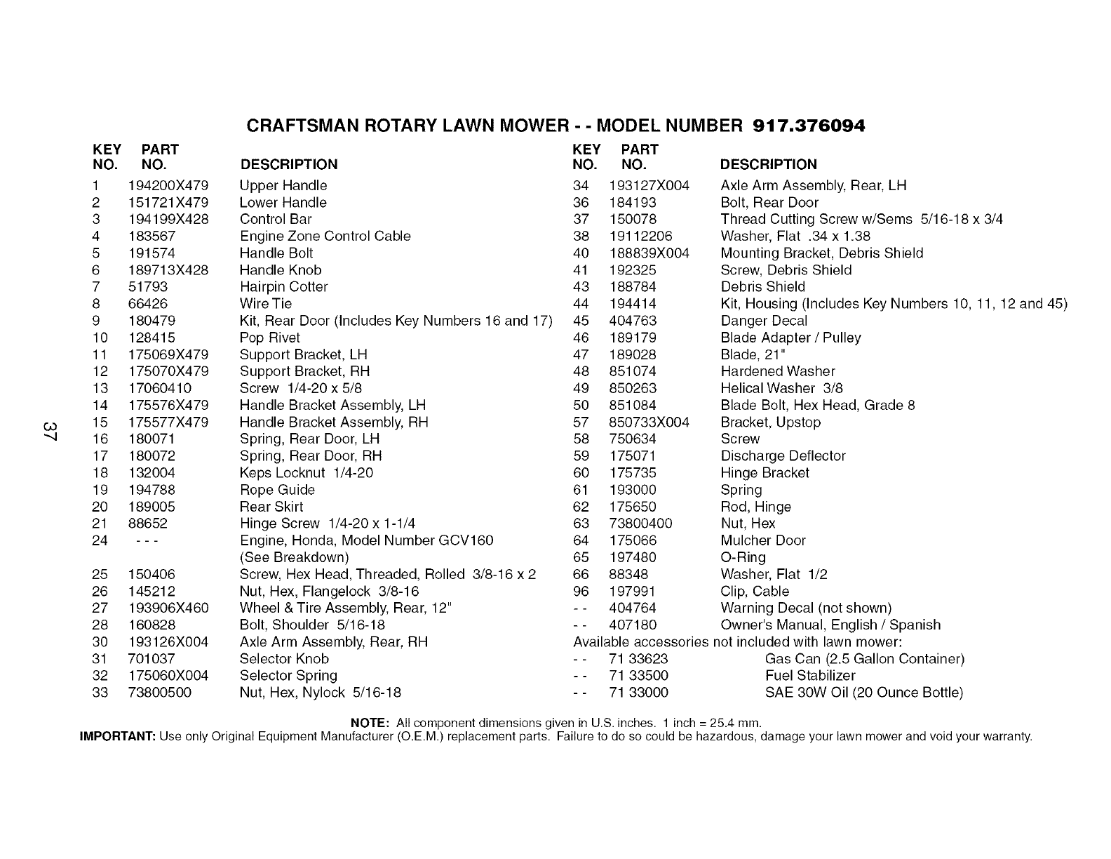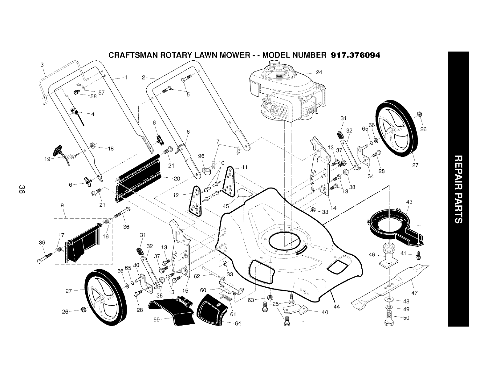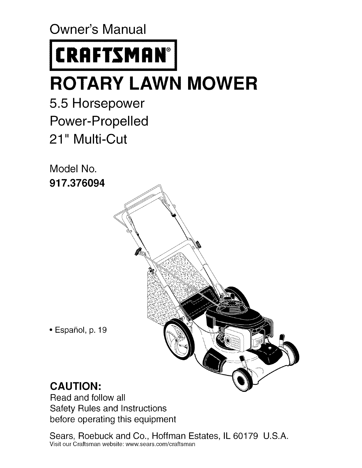 User Manual: Craftsman 917376094 917376094 CRAFTSMAN MOWER - Manuals and Guides View the owners manual for your CRAFTSMAN MOWER #917376094. Home:Lawn & Garden Parts:Craftsman Parts:Craftsman MOWER Manual