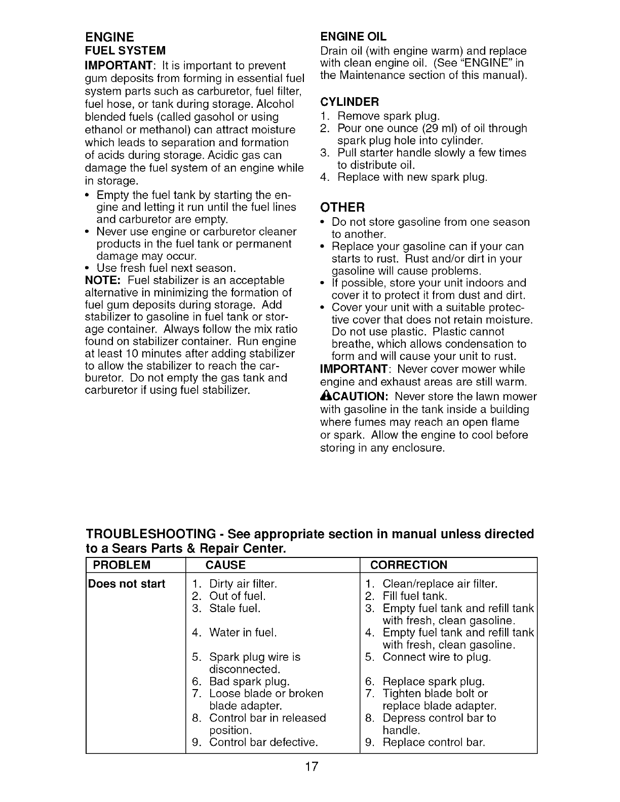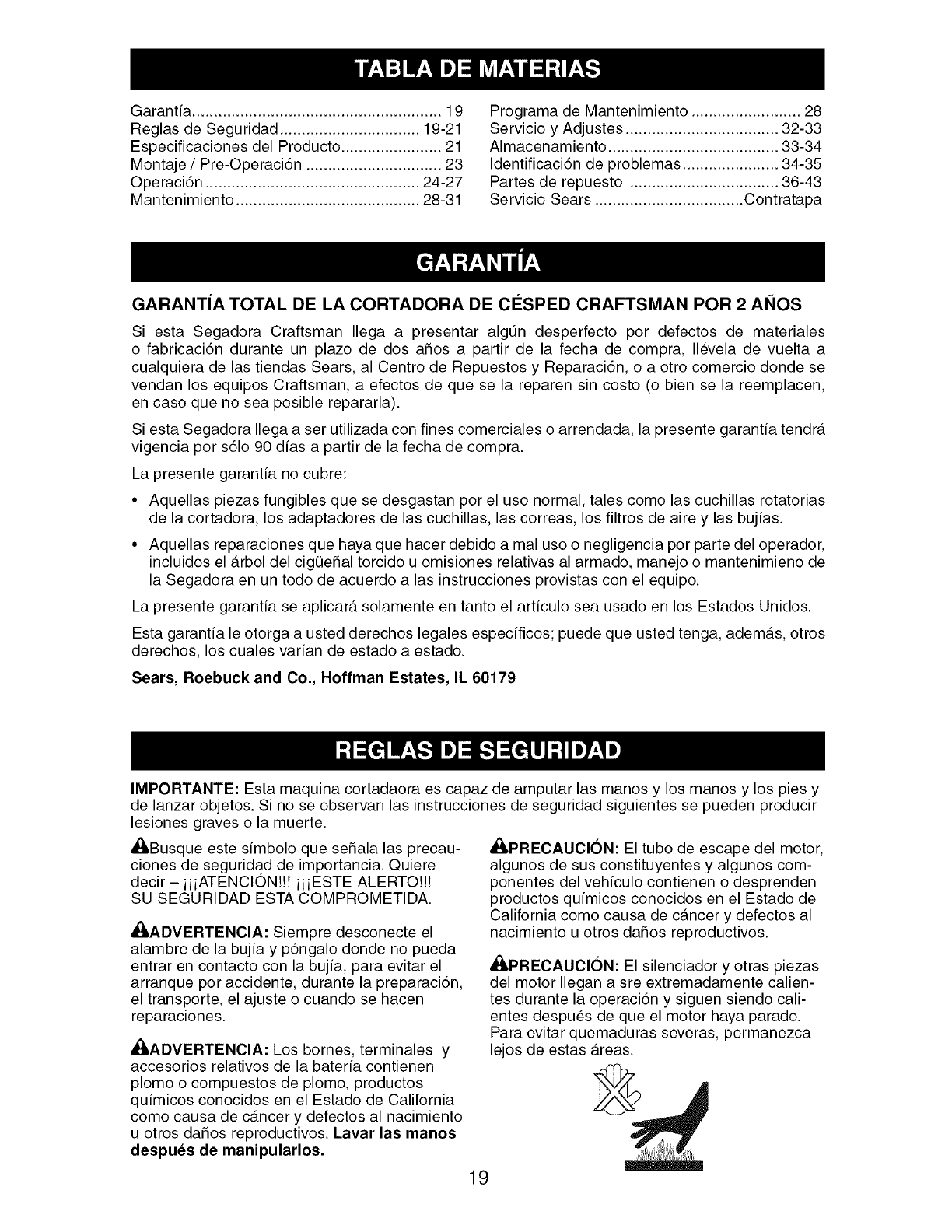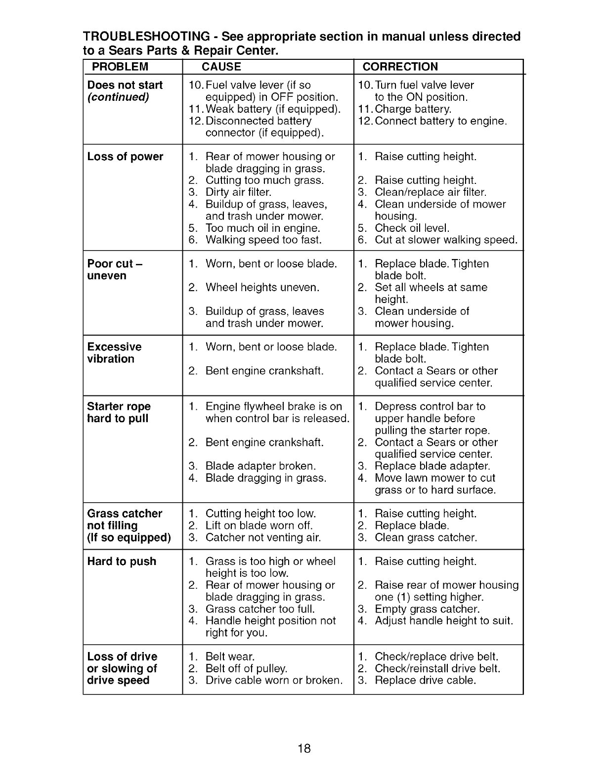 Sears Service .......................... Back Cover