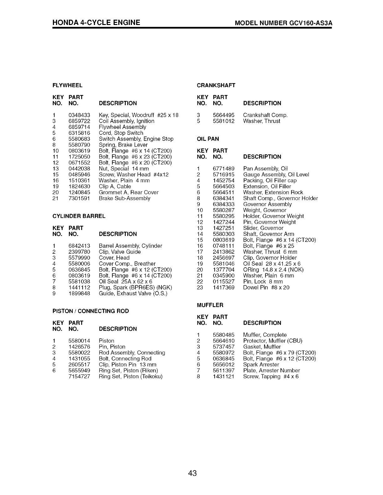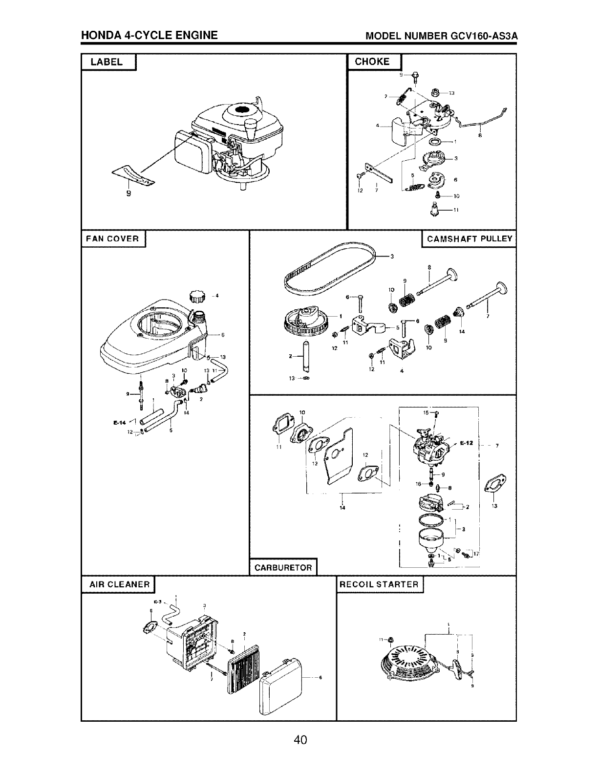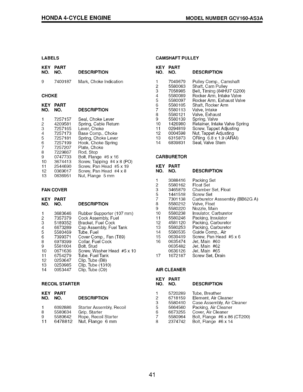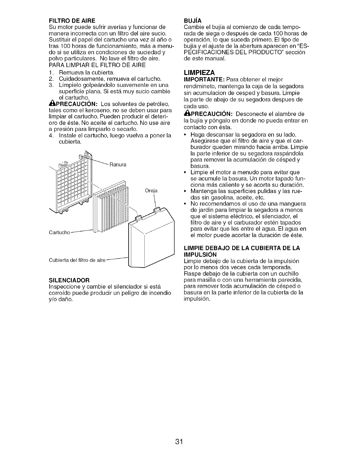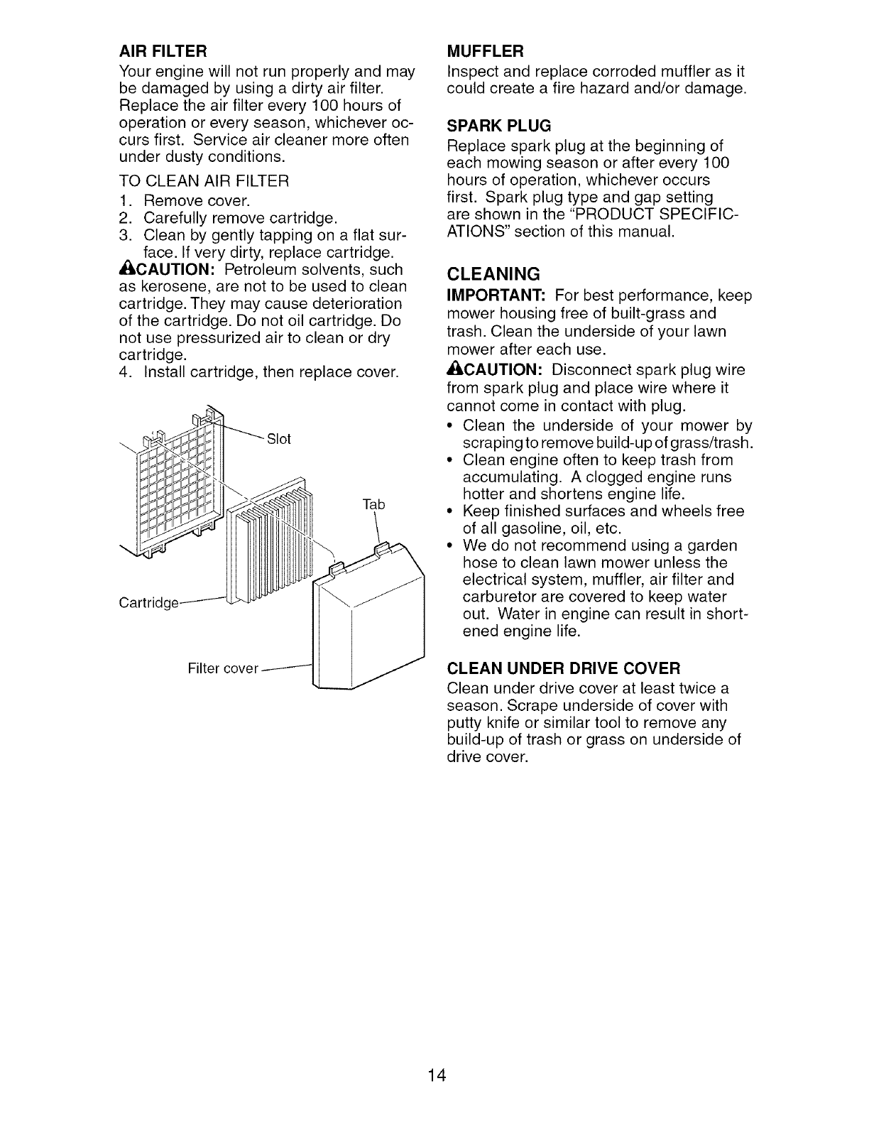blades, blade adapters, belts, air cleaners and spark plug.