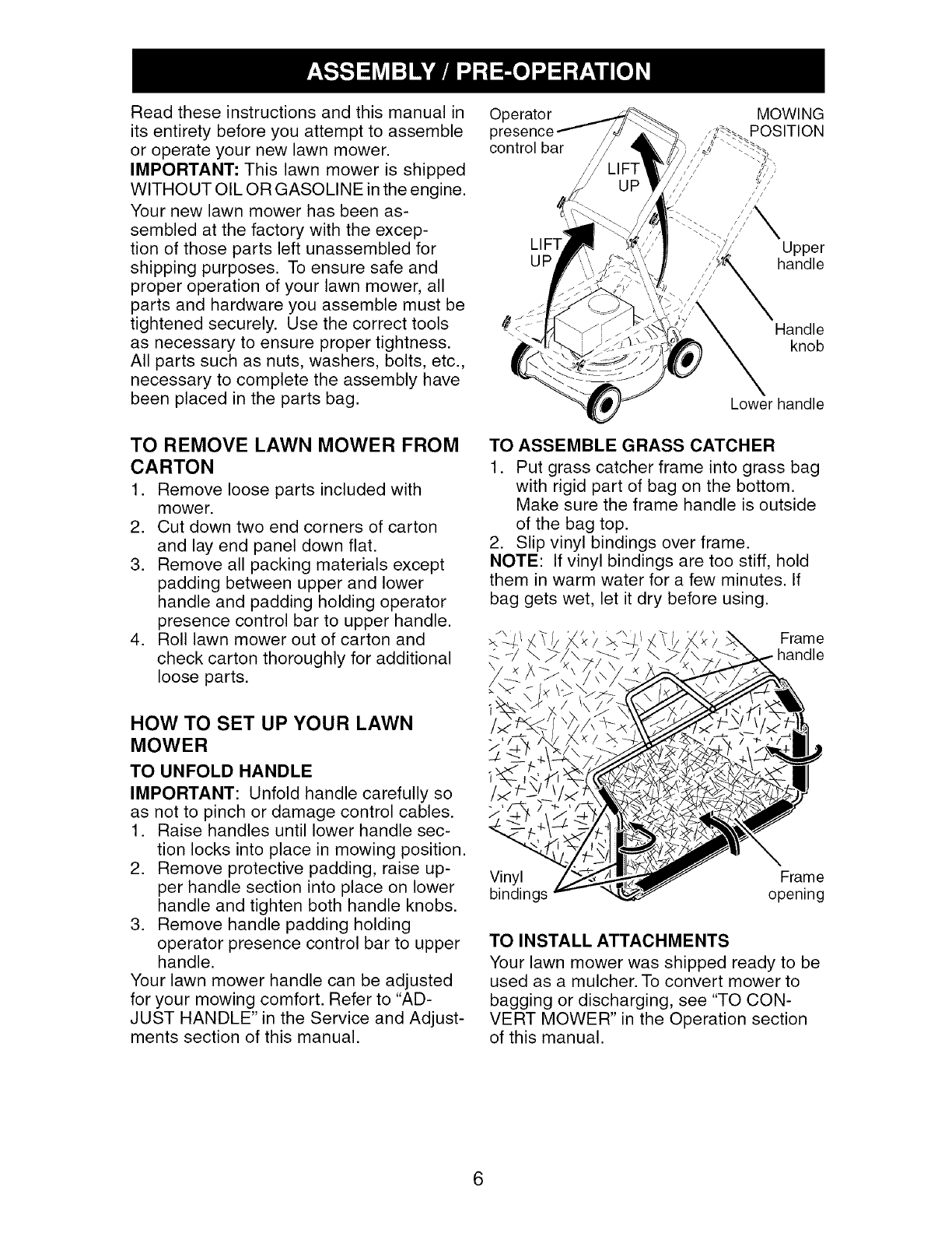 Assembly /Pre-Operation ........................ 6