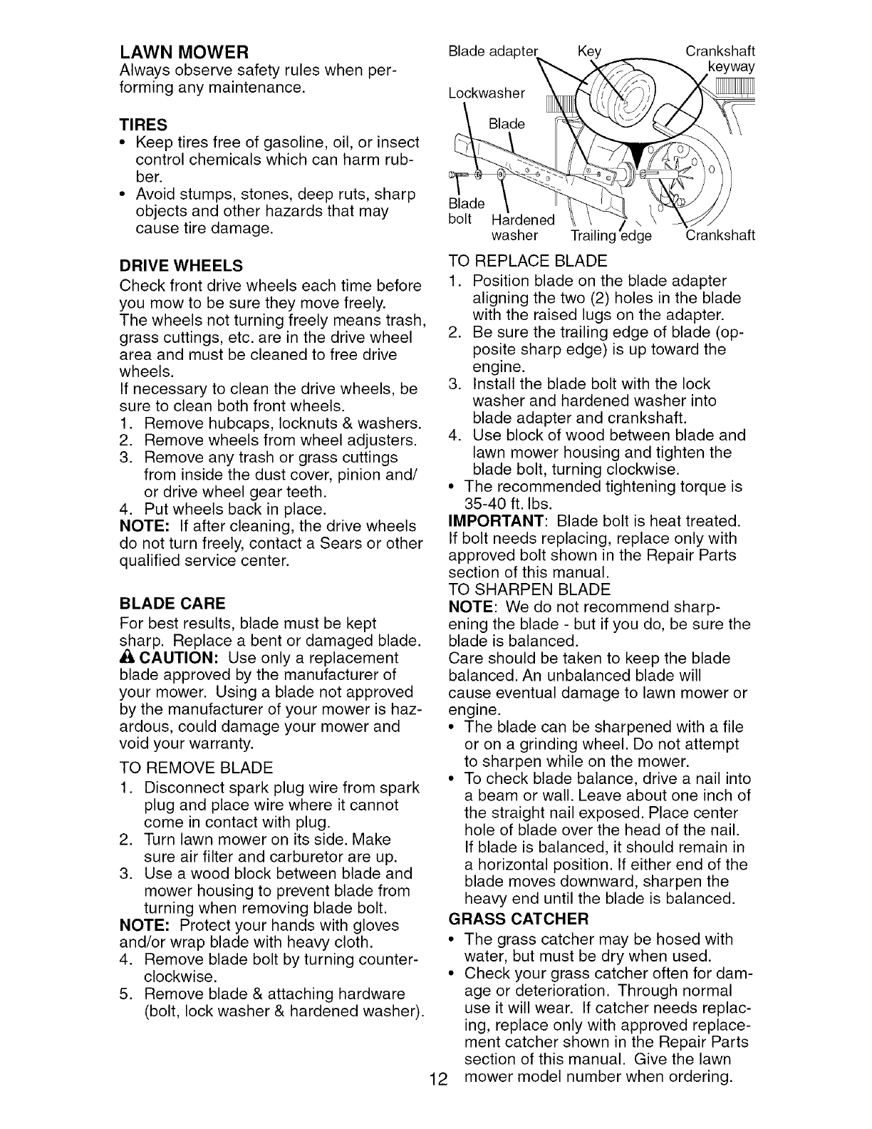 crackshafts and the failure to assemble, operate or maintain this Lawn Mower