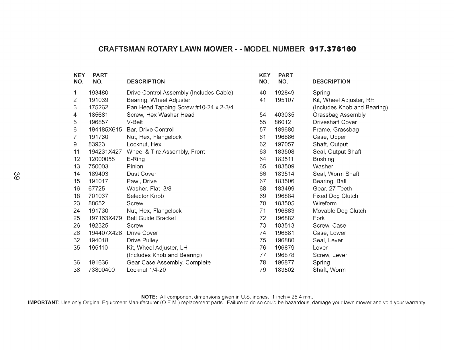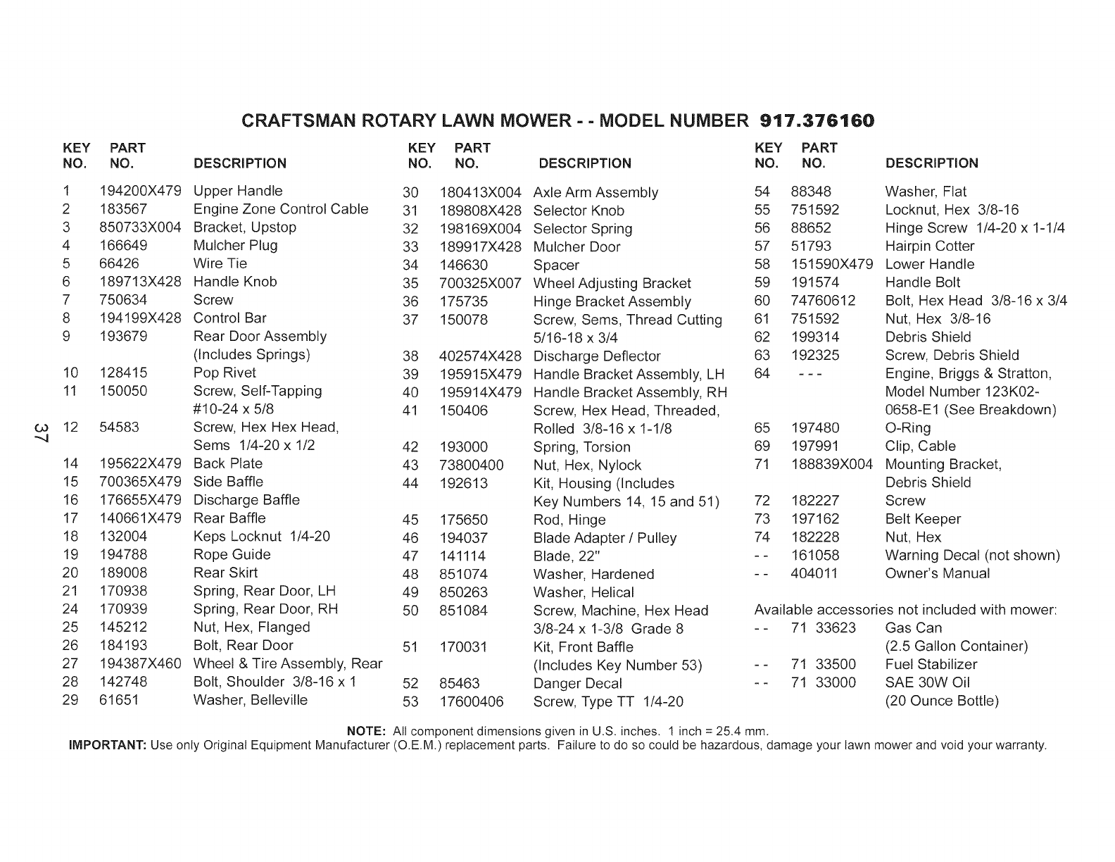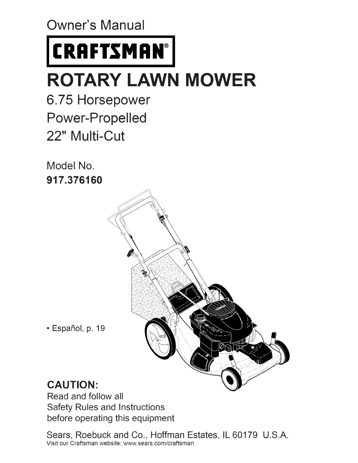 User Manual: Craftsman 917376160 917376160 CRAFTSMAN MOWER - Manuals and Guides View the owners manual for your CRAFTSMAN MOWER #917376160. Home:Lawn & Garden Parts:Craftsman Parts:Craftsman MOWER Manual