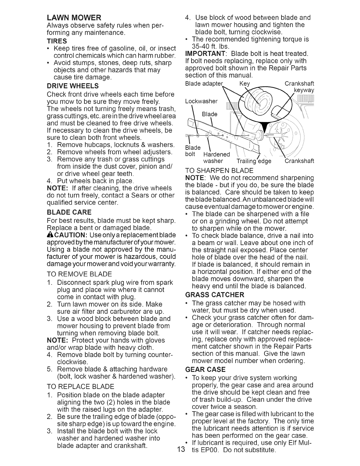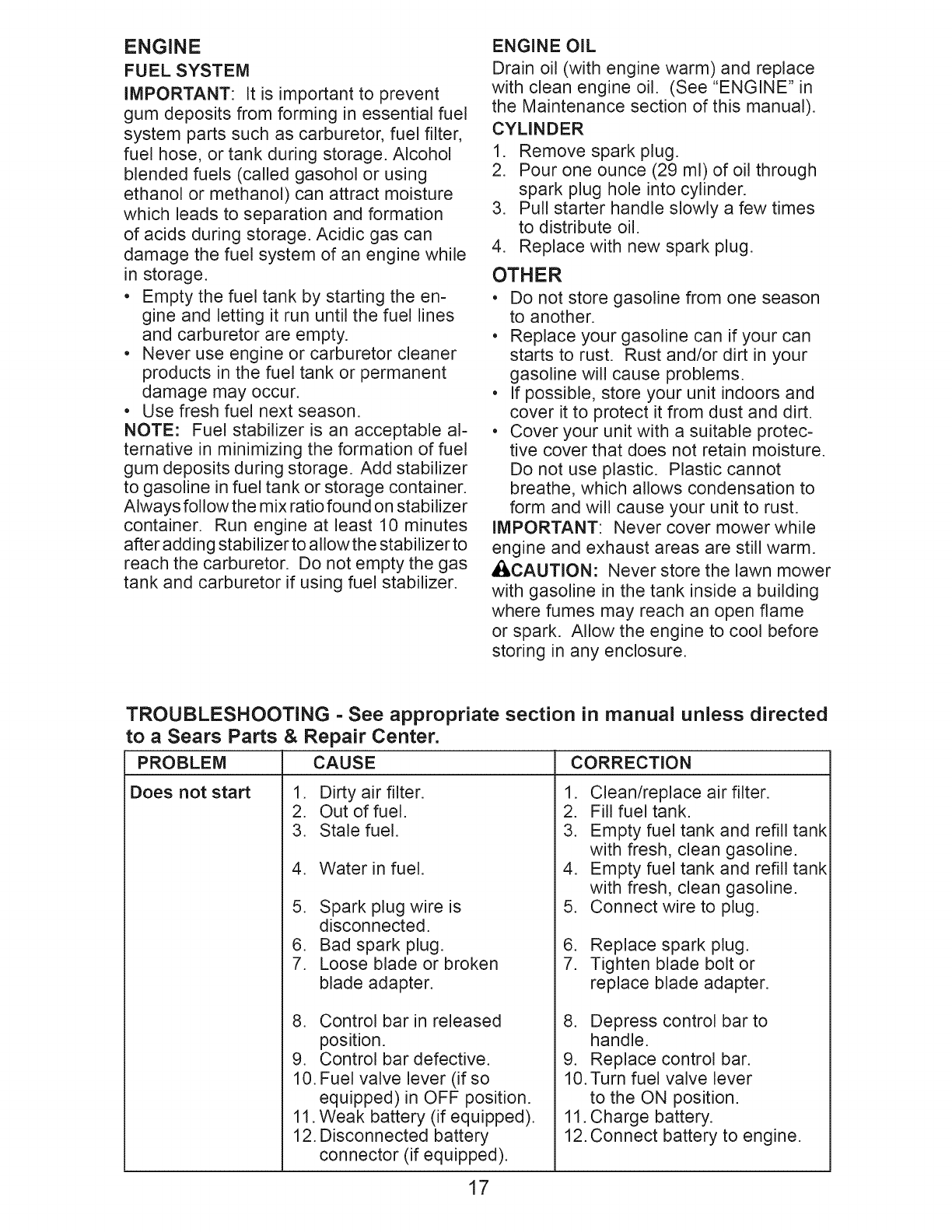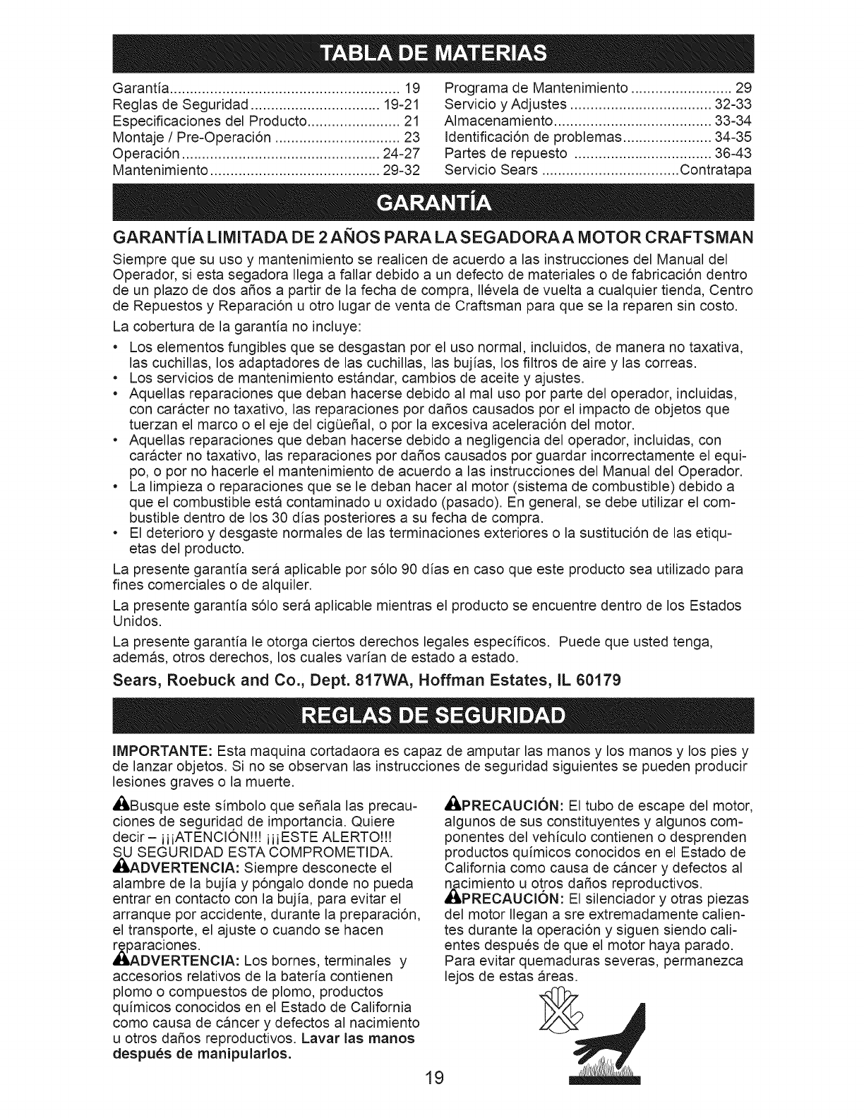 Sears Service .......................... Back Cover