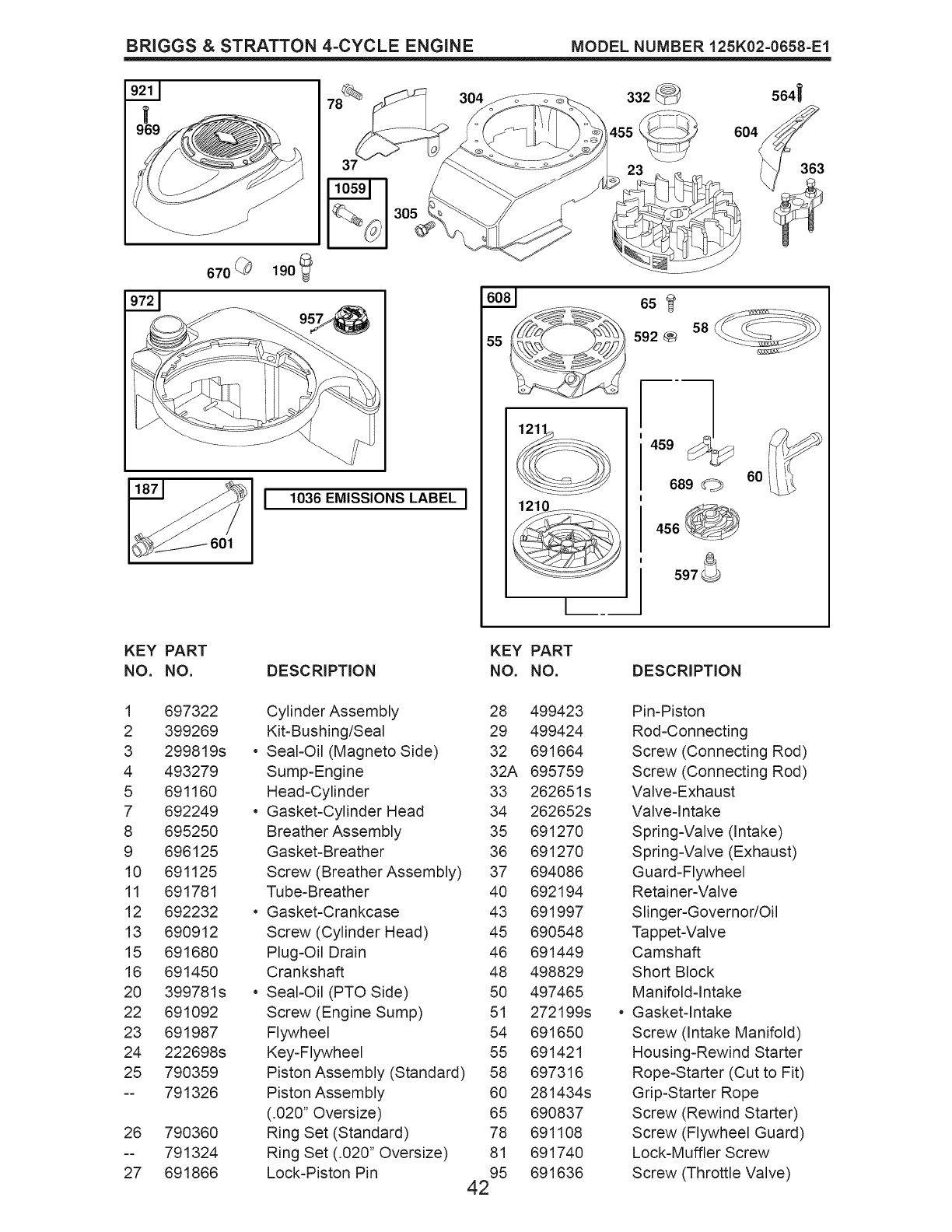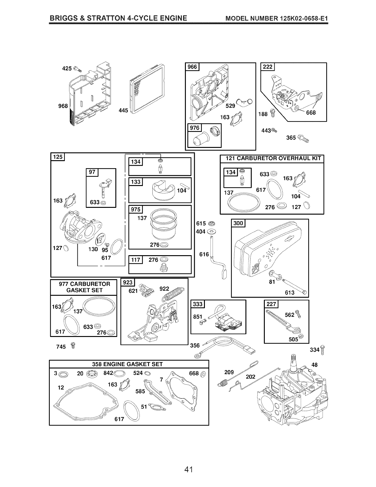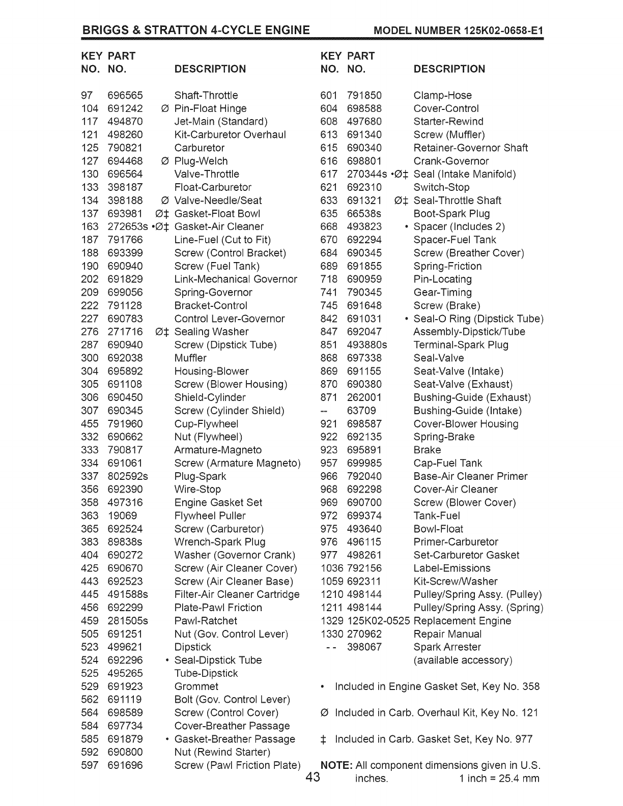 125 790821 Carburetor 615 690340 Retainer-Governor Shaft