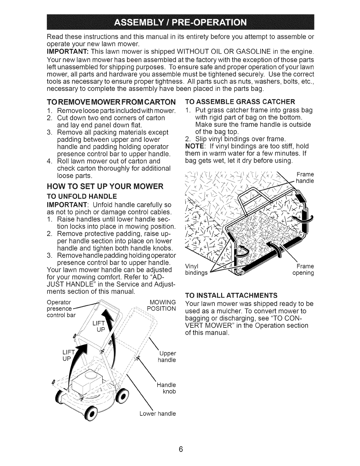 Assembly /Pre-Operation ........................ 6