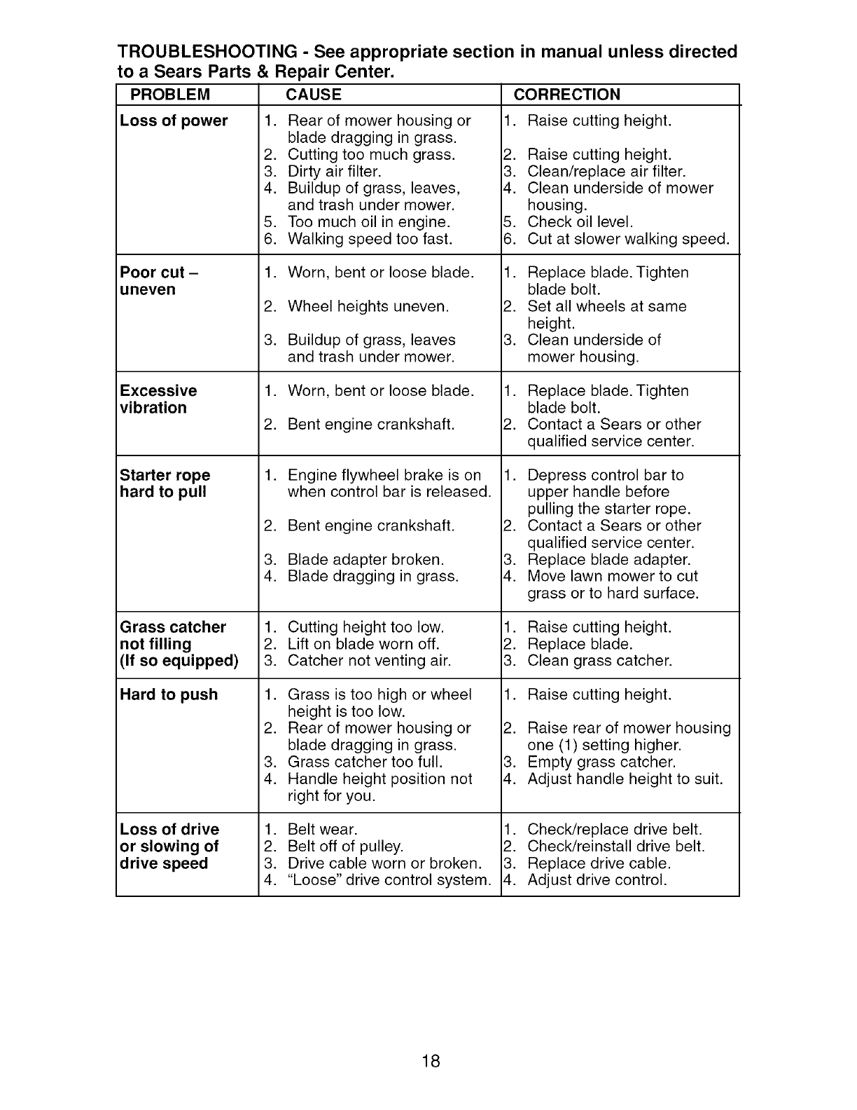 Sears Service .......................... Back Cover