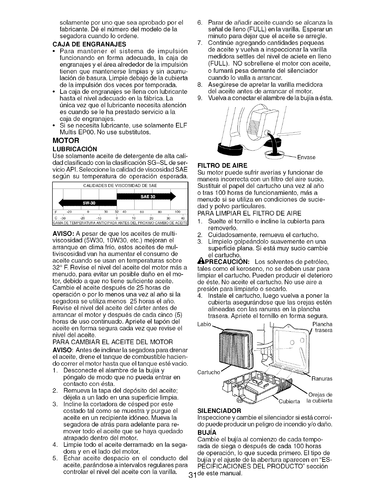 blades, blade adapters, belts, air cleaners and spark plug.