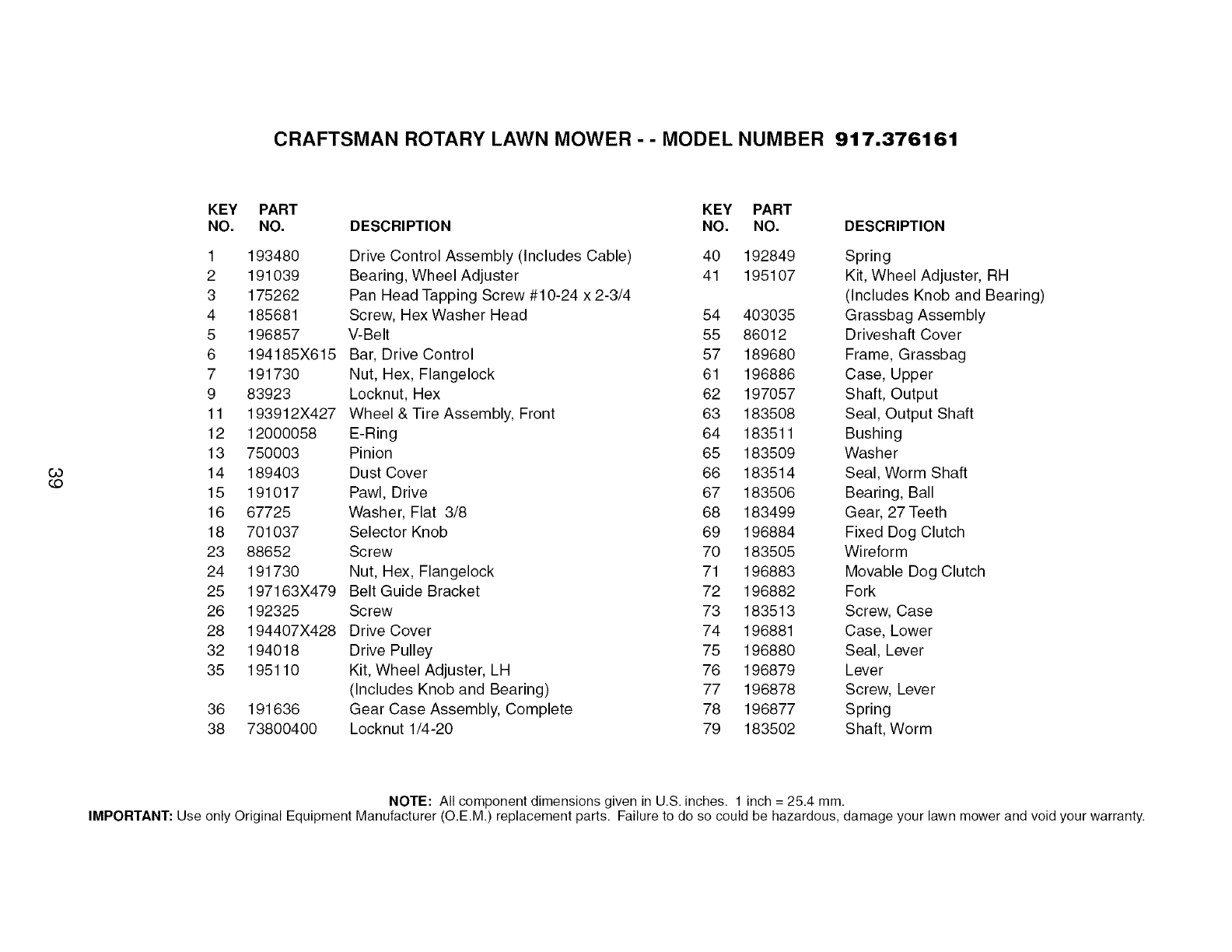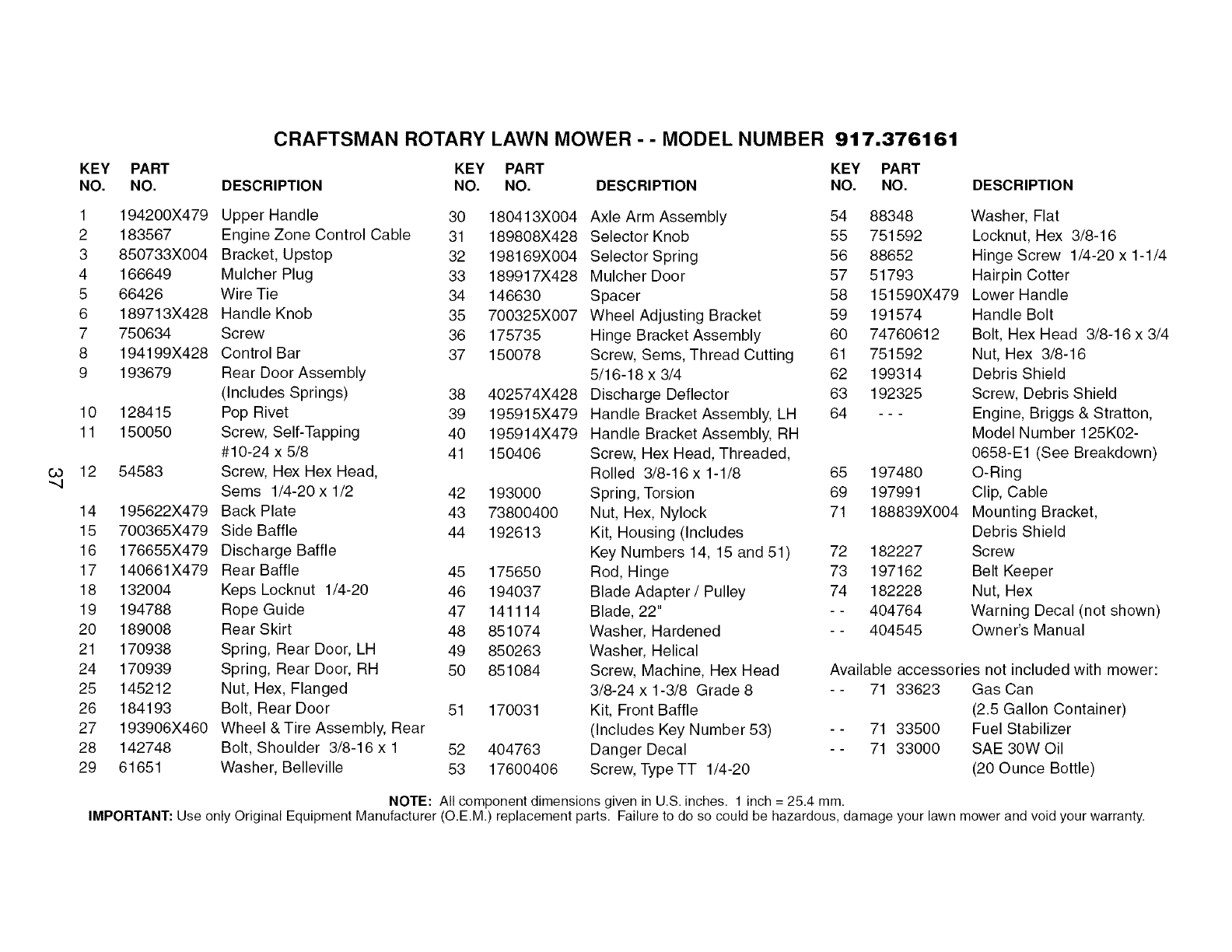 User Manual: Craftsman 917376161 917376161 CRAFTSMAN MOWER - Manuals and Guides View the owners manual for your CRAFTSMAN MOWER #917376161. Home:Lawn & Garden Parts:Craftsman Parts:Craftsman MOWER Manual