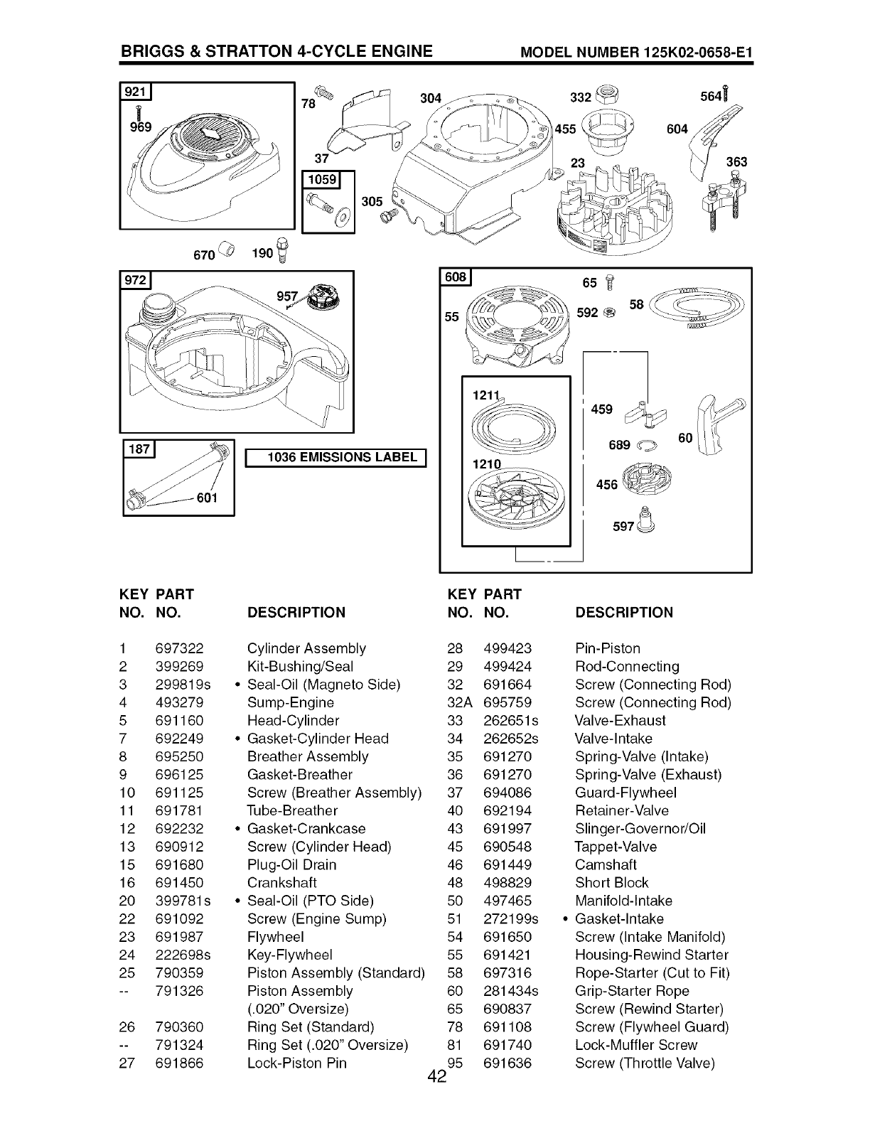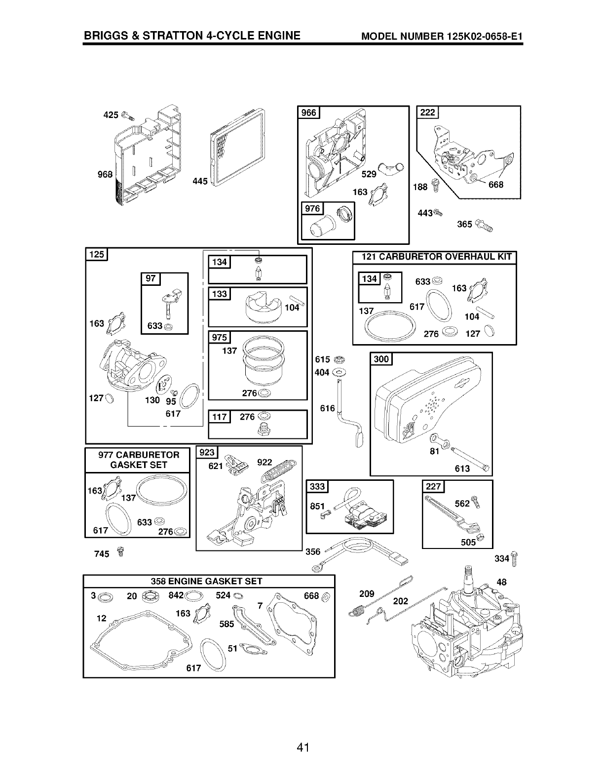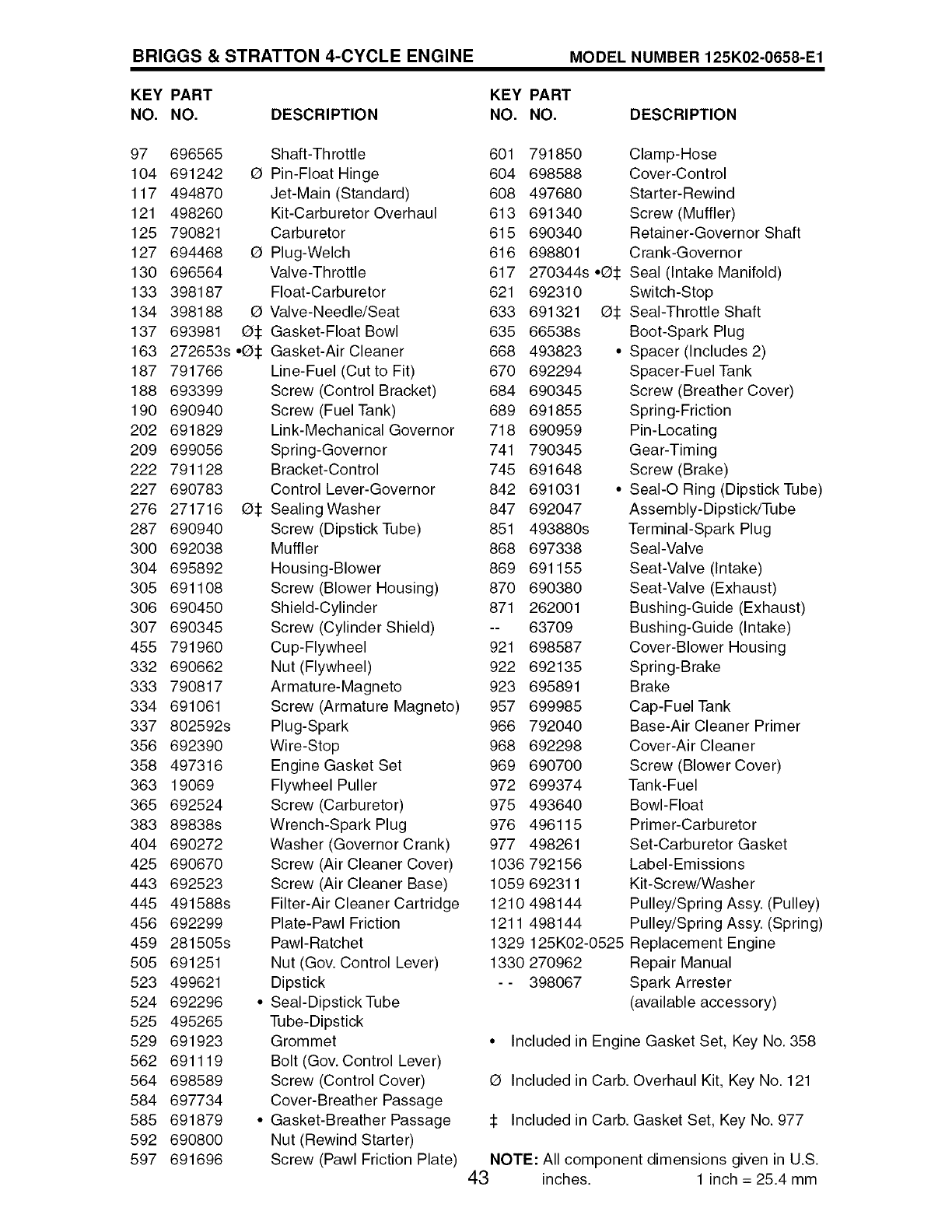 O Included in Carb. Overhaul Kit, Key No. 121