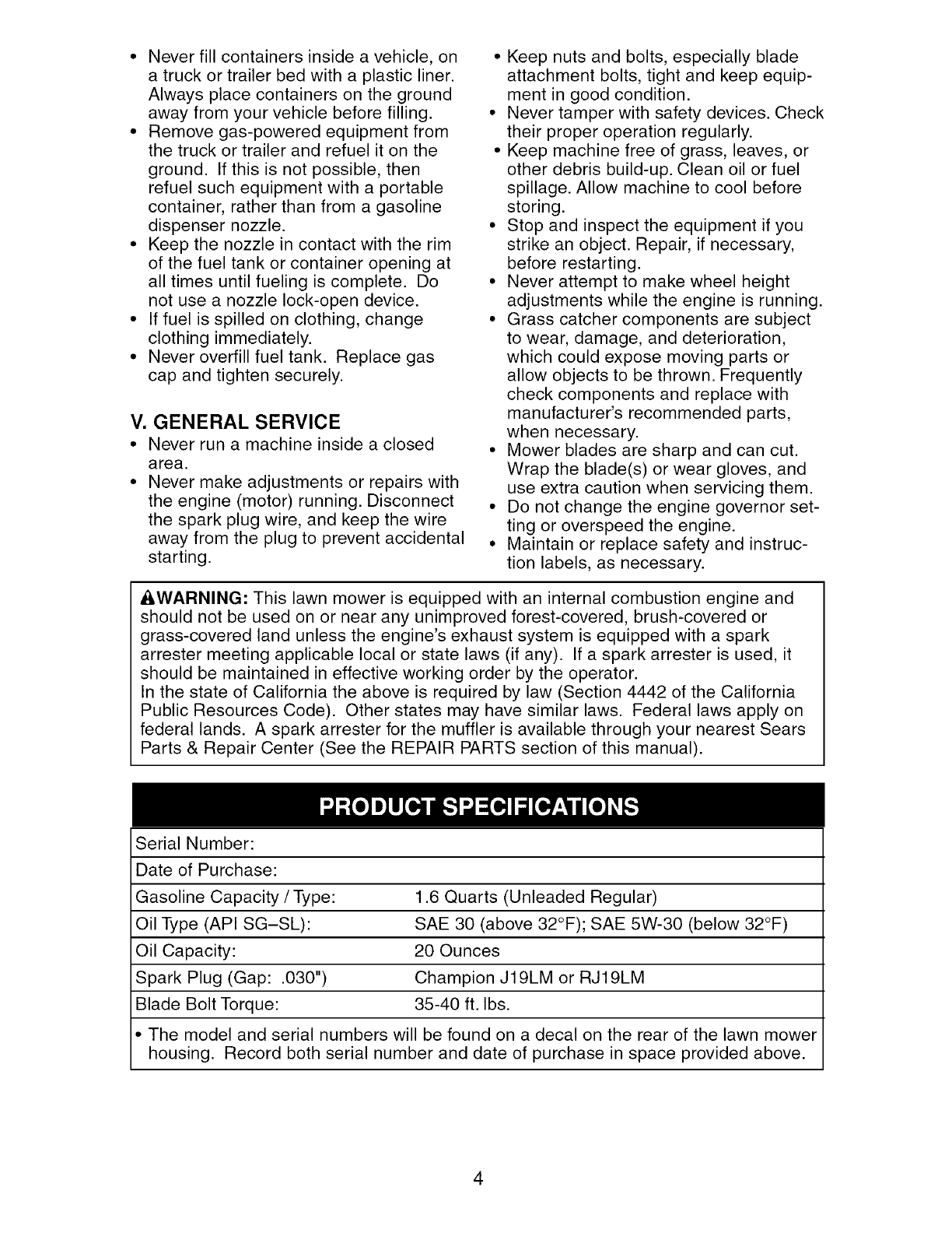 2-YEAR FULL WARRANTY ON CRAFTSMAN LAWN MOWER