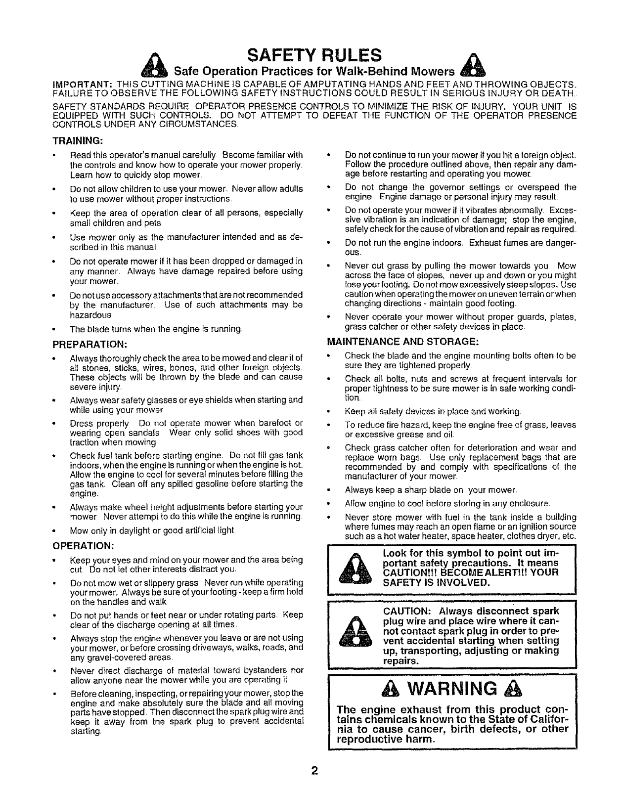 SAFETY STANDARDS REQUIRE OPERATOR PRESENCE CONTROLS TO MINIMIZE THE RISK OF INJURY, YOUR UNIT IS