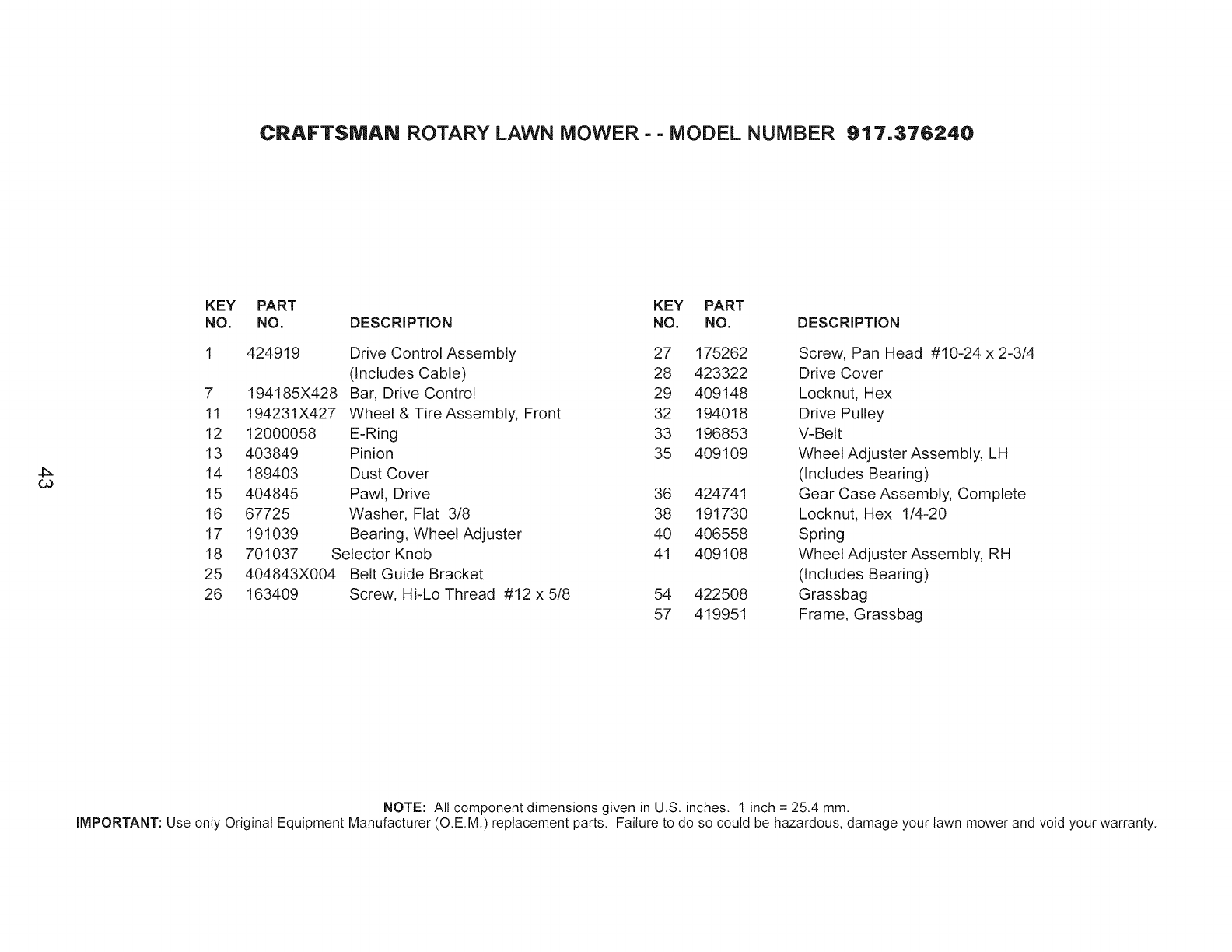 User Manual: Craftsman 917376240 917376240 CRAFTSMAN ROTARY MOWER - Manuals and Guides View the owners manual for your CRAFTSMAN ROTARY MOWER #917376240. Home:Lawn & Garden Parts:Craftsman Parts:Craftsman ROTARY MOWER Manual