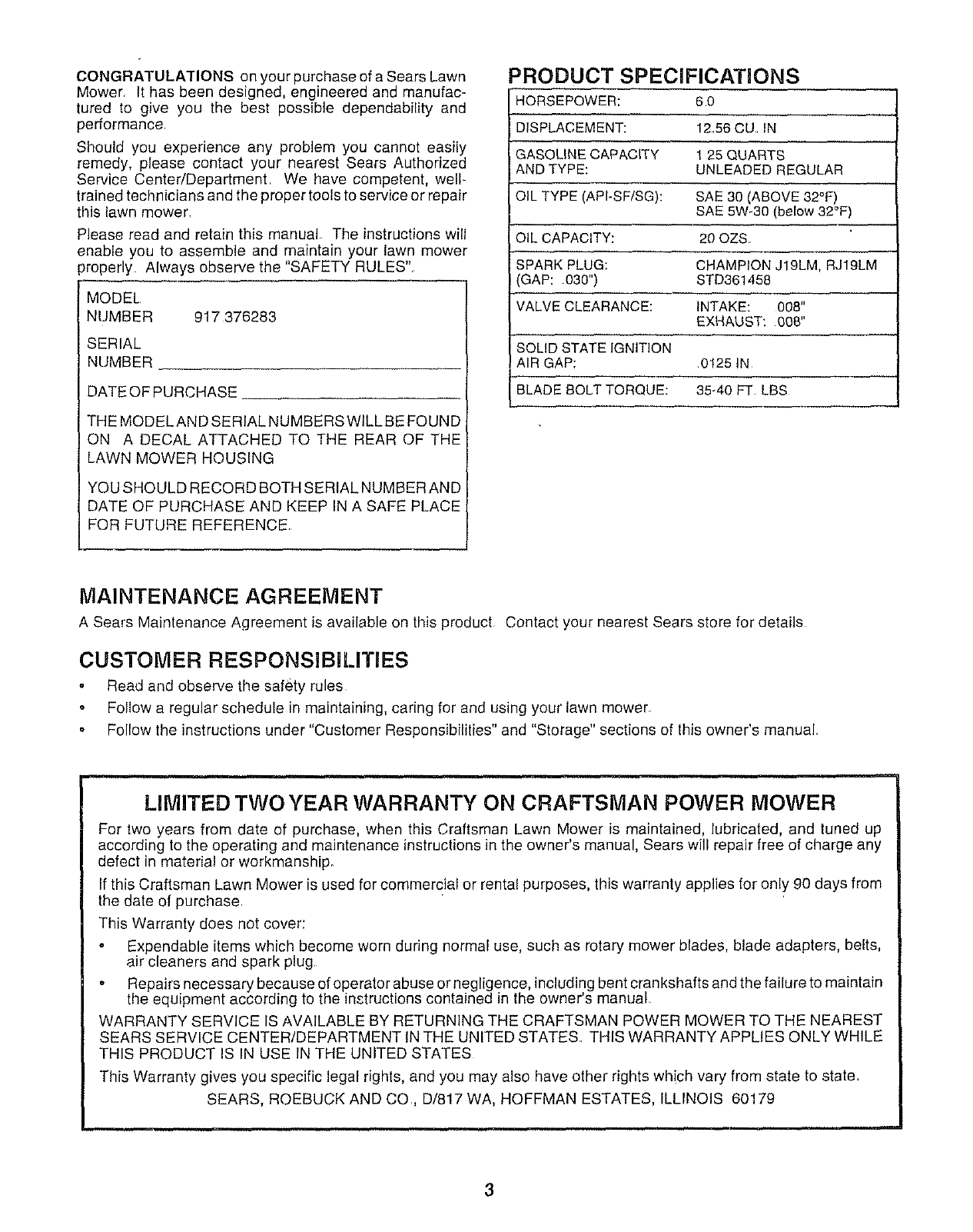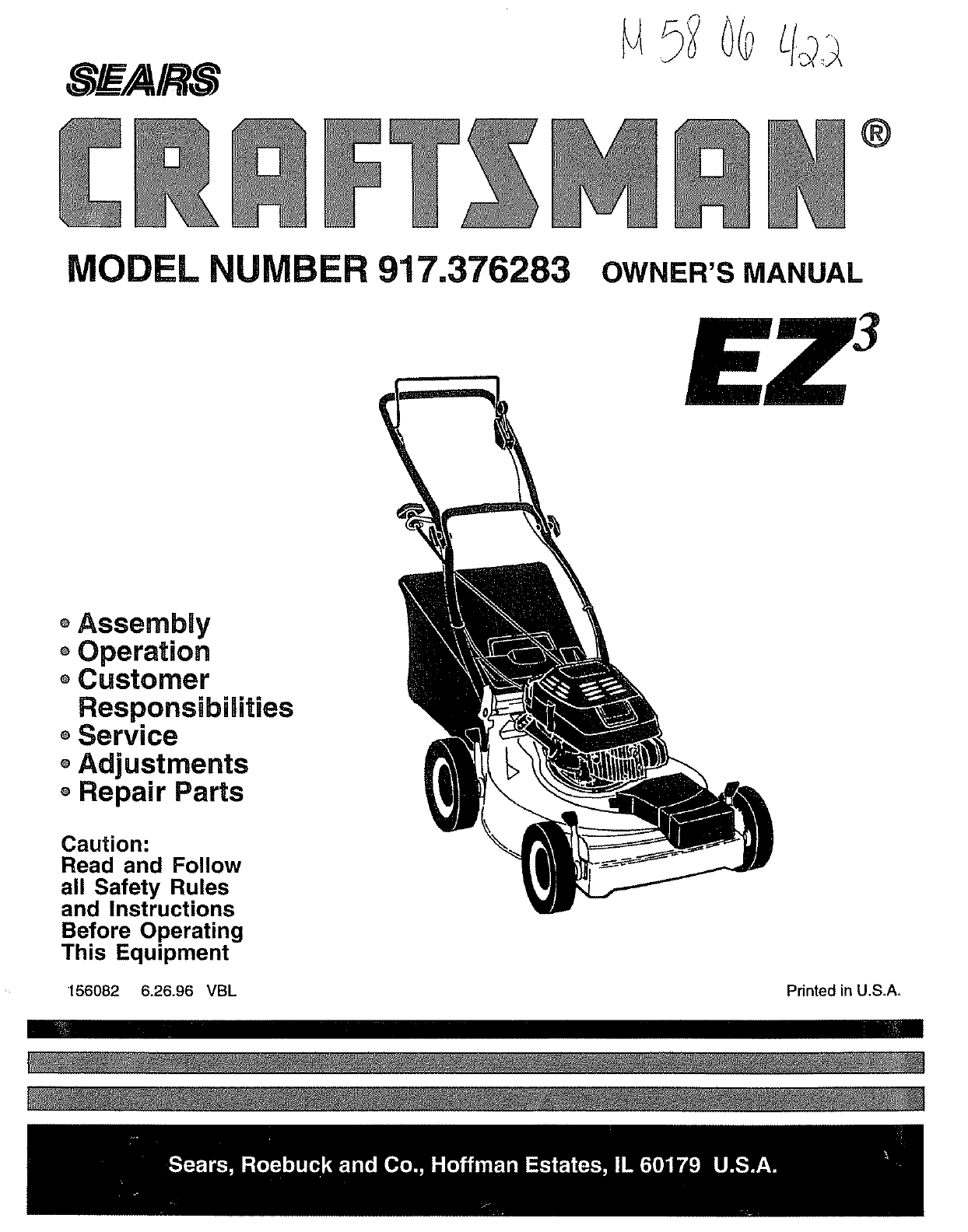 User Manual: Craftsman 917376283 917376283 CRAFTSMAN ROTARY MOWER - Manuals and Guides View the owners manual for your CRAFTSMAN ROTARY MOWER #917376283. Home:Lawn & Garden Parts:Craftsman Parts:Craftsman ROTARY MOWER Manual