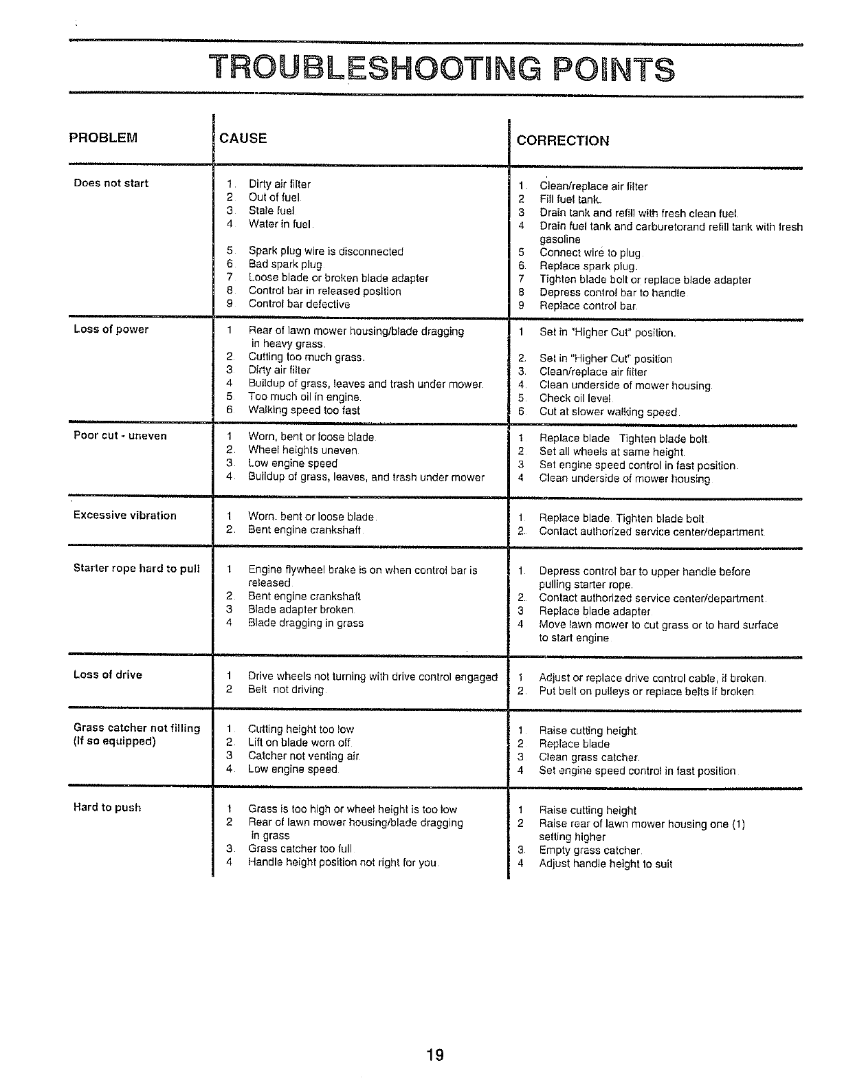 °Do not operate your mower ifit vibretes abnormally Exces-