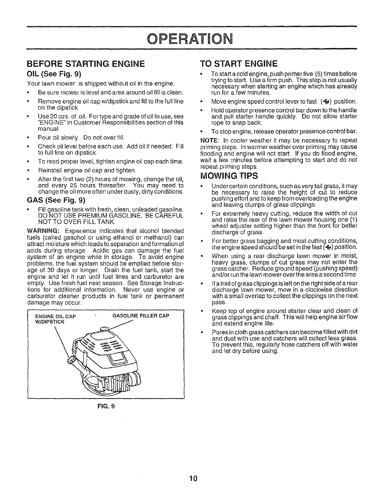 IMPORTANT: NEVER COVER MOWER WHILE ENGINE