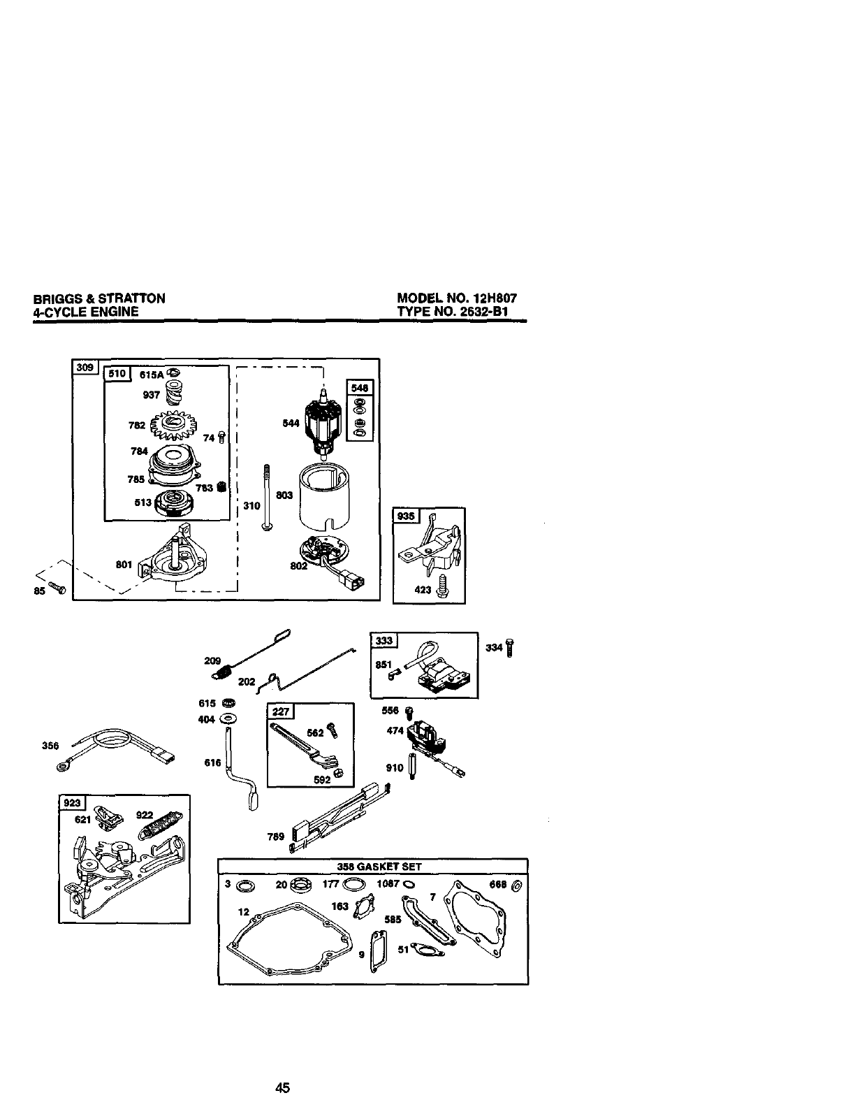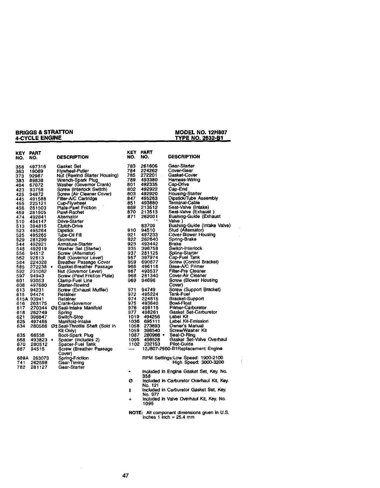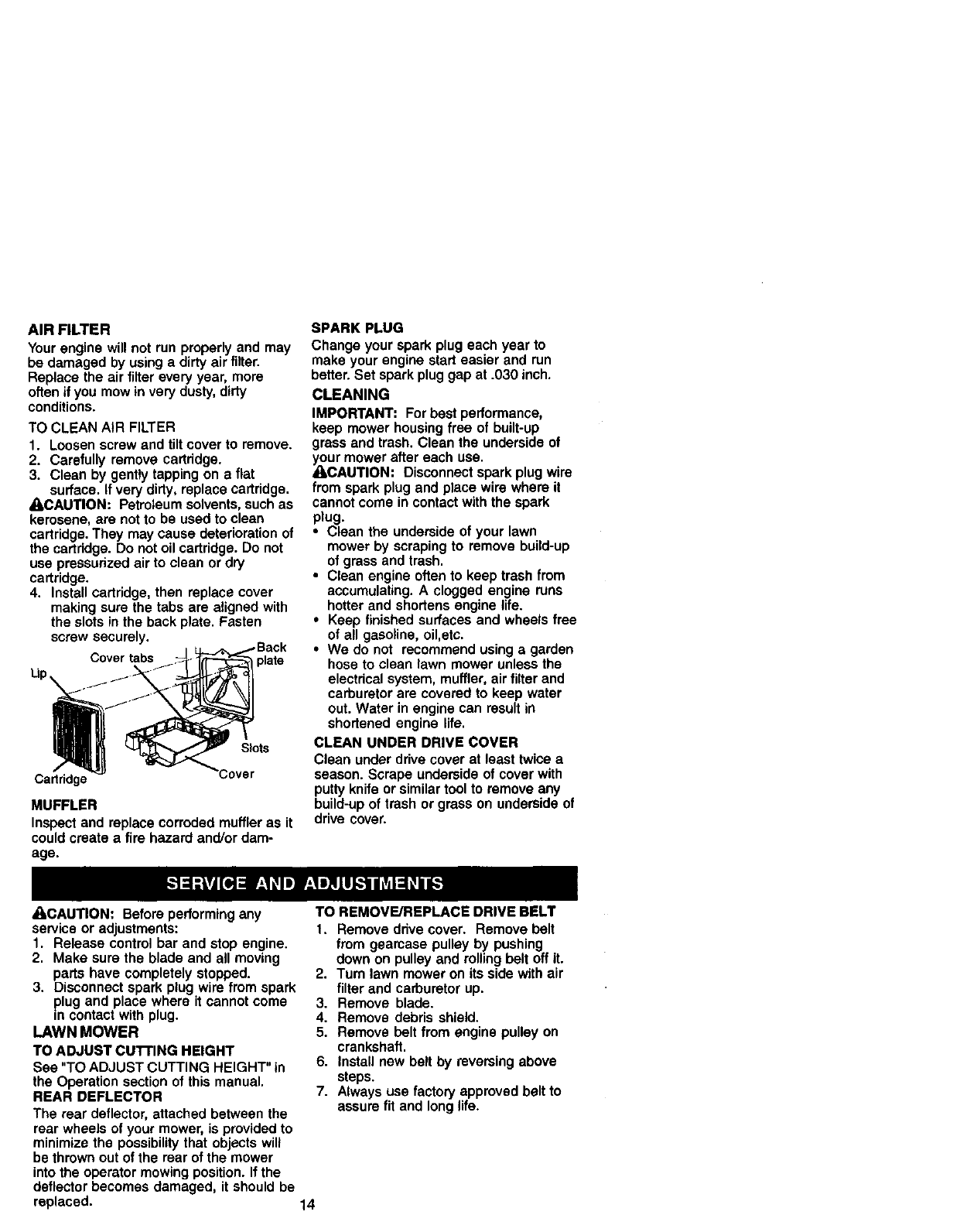 blades,blade adapters,belts, air cleanersand sparkplug.