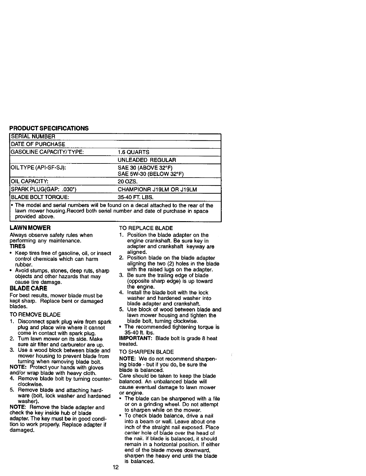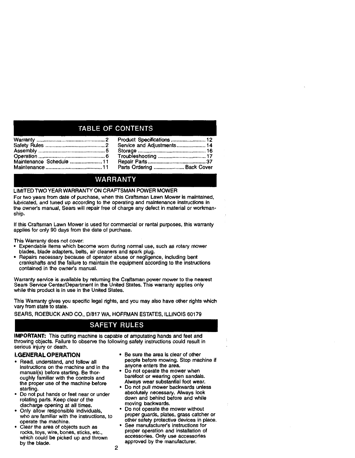 LIMITED TWO YEAR WARRANTY ON CRAFTSMAN POWER MOWER