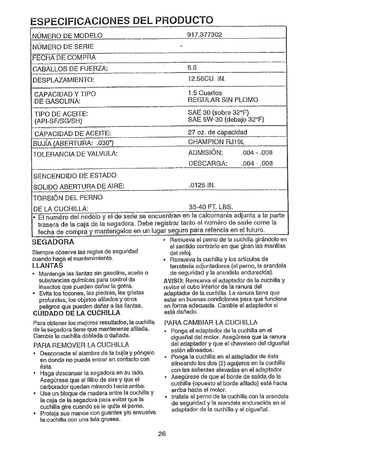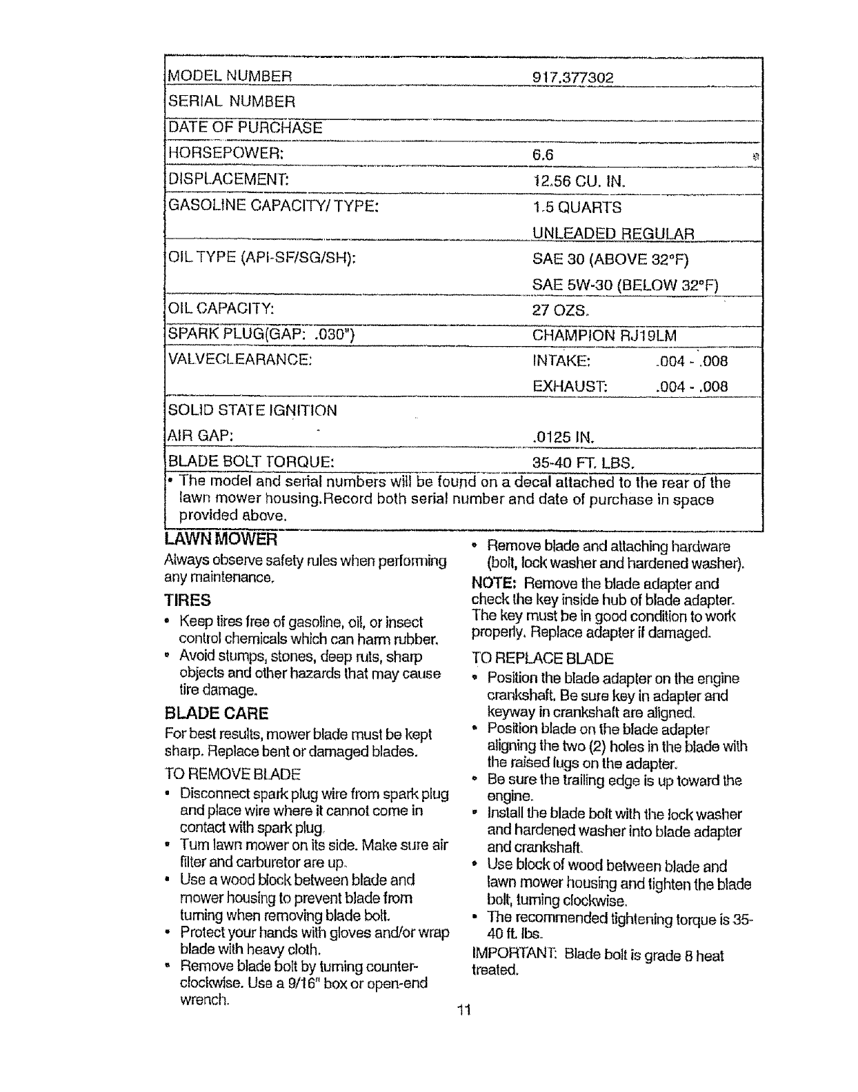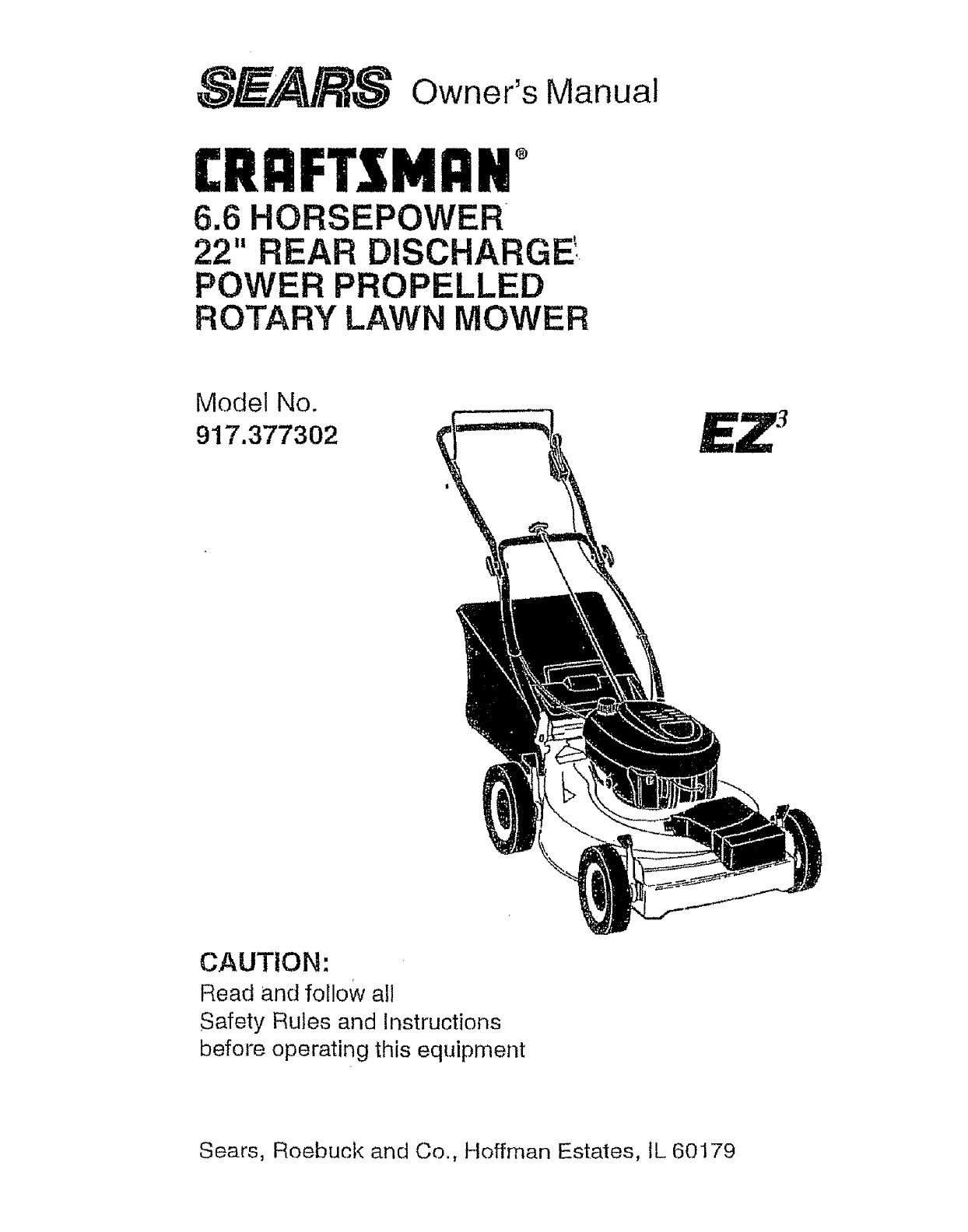 Craftsman 917377302 User Manual MOWER Manuals And Guides L0806650