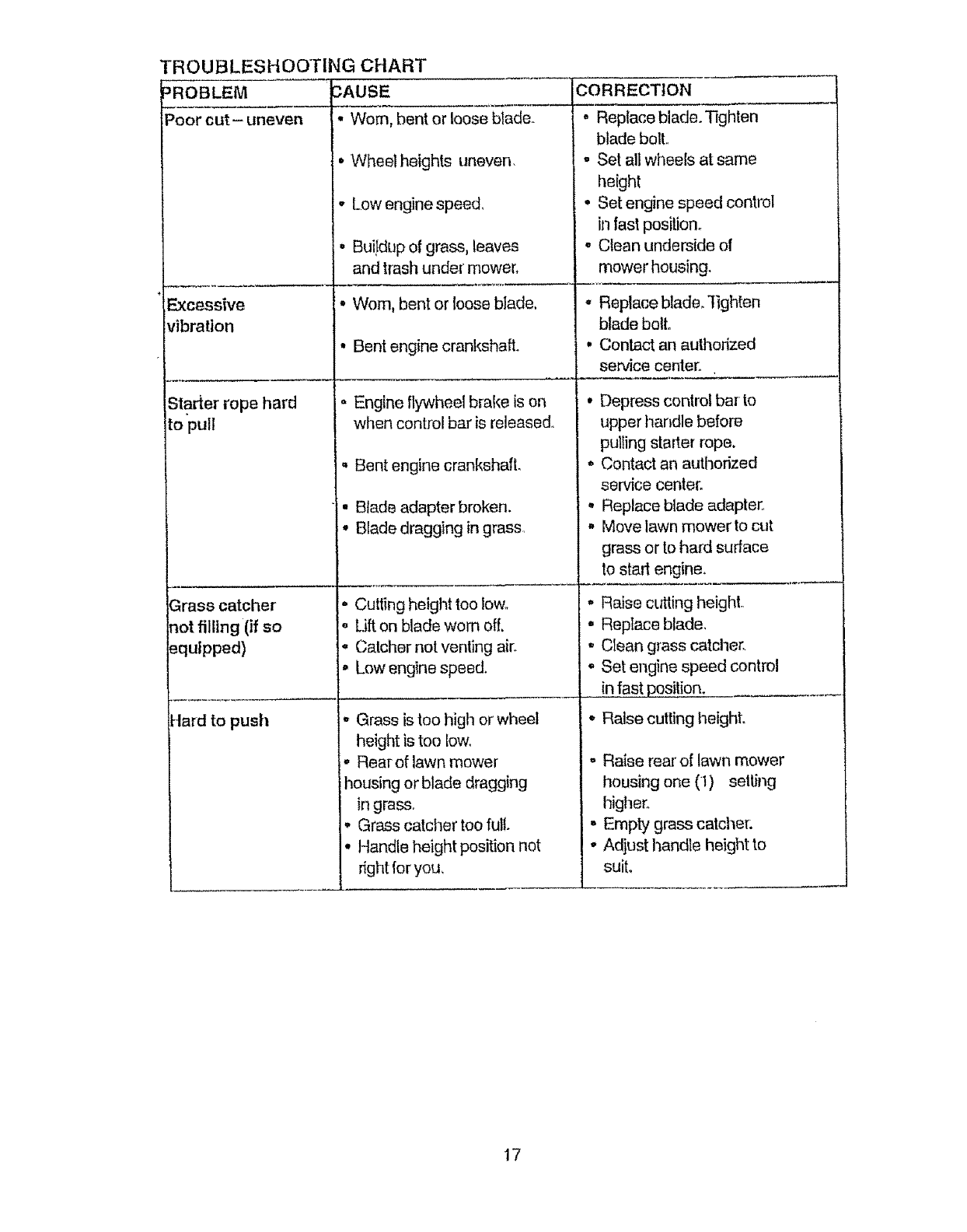 o Repairs necessary because of operator abuse or negligence, including bent crank-