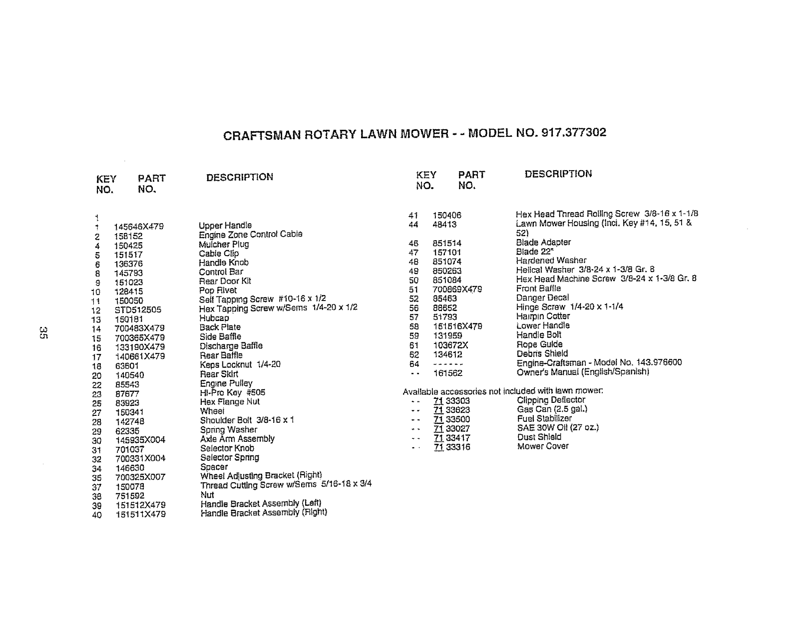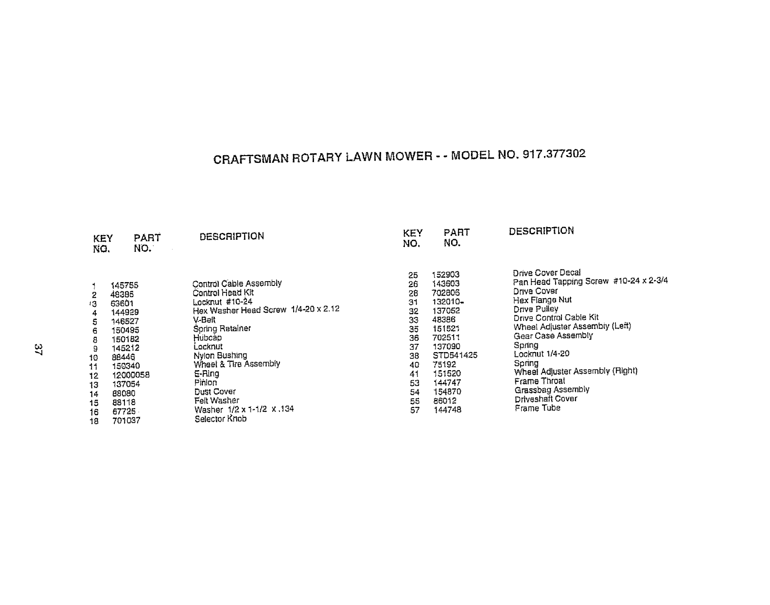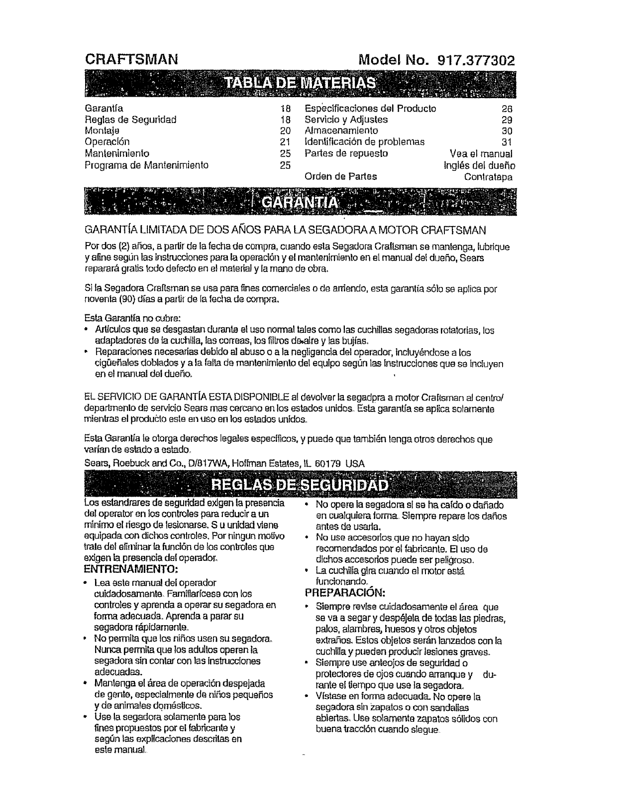 User Manual: Craftsman 917377302 917377302 CRAFTSMAN MOWER - Manuals and Guides View the owners manual for your CRAFTSMAN MOWER #917377302. Home:Lawn & Garden Parts:Craftsman Parts:Craftsman MOWER Manual