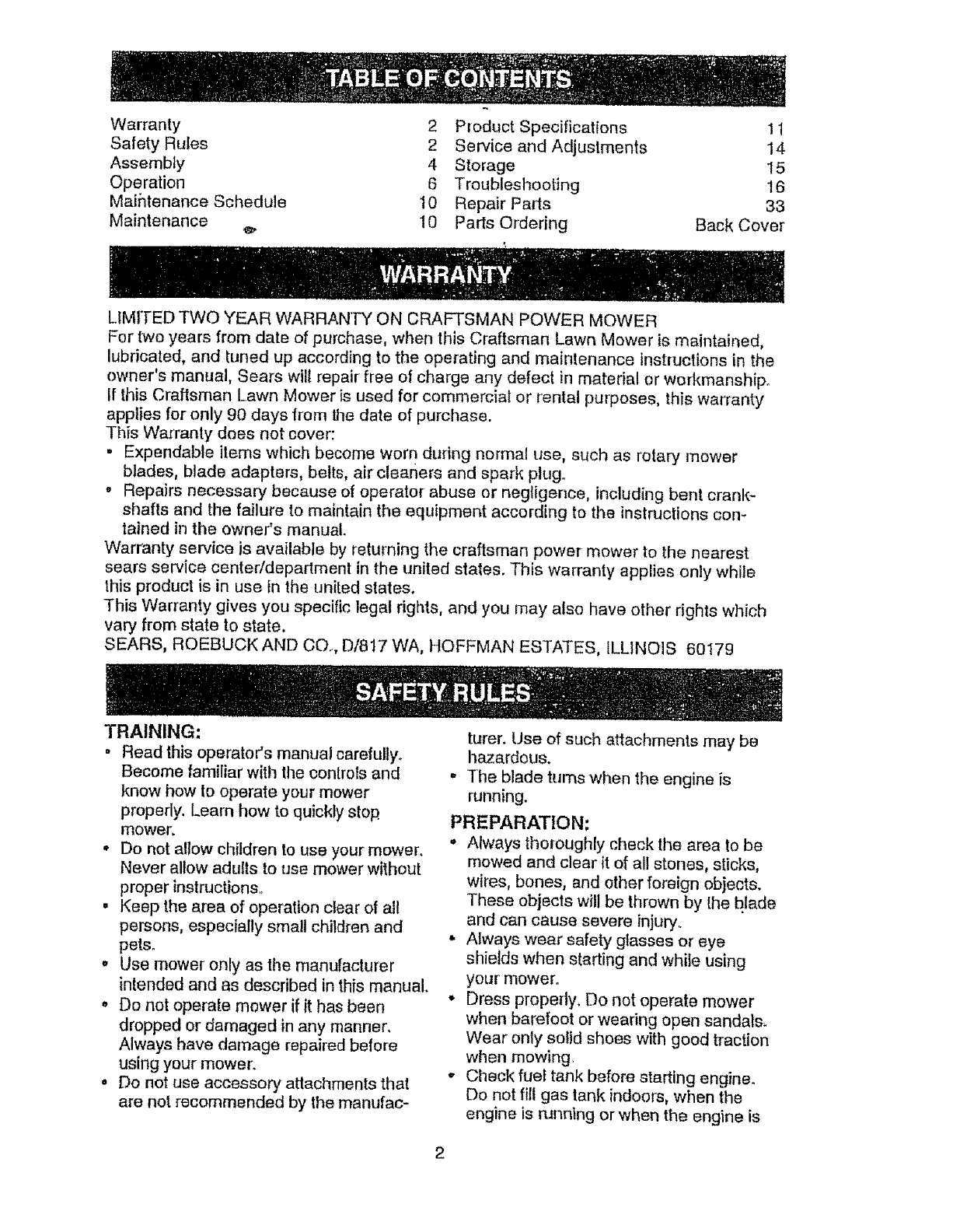 LIMITED TWO YEAR WARRANTY ON CRAFTSMAN POWER MOWER