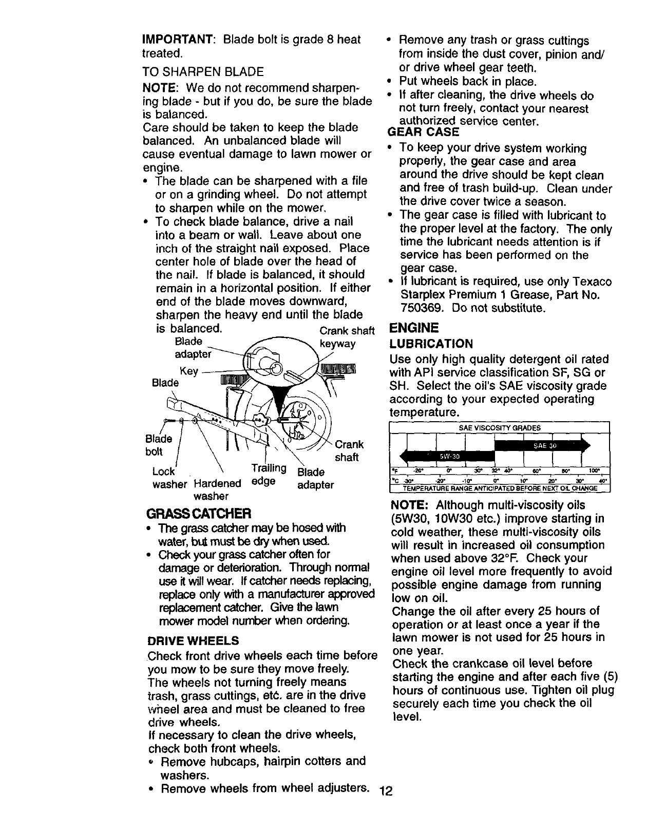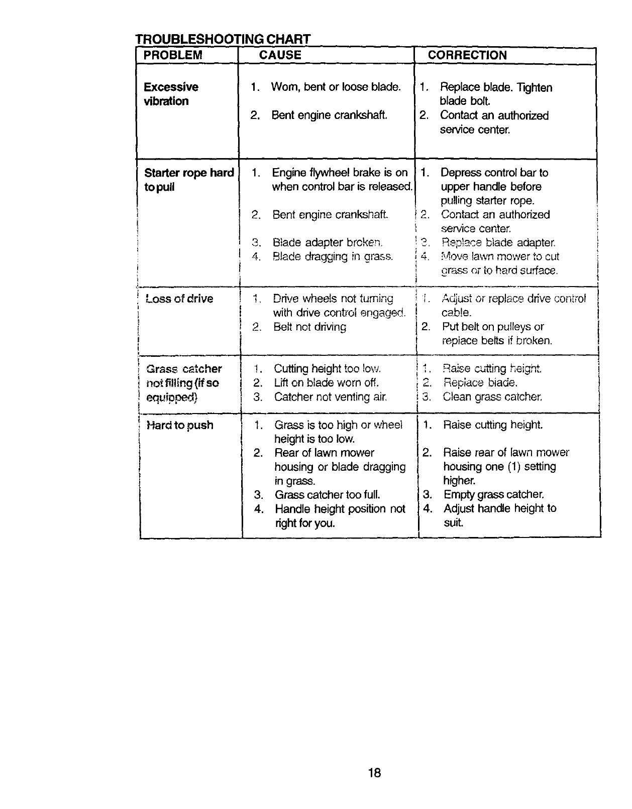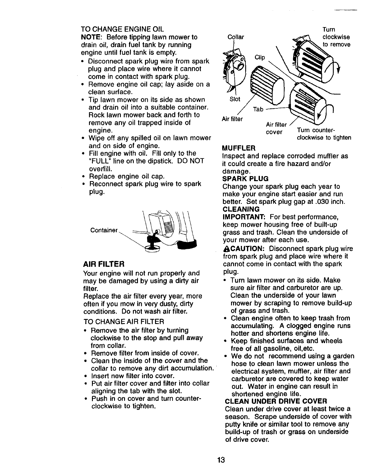 blades, blade adapters, belts, air cleaners and spark plug.
