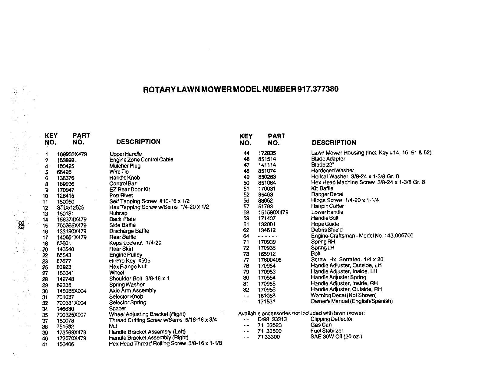 User Manual: Craftsman 917377380 917377380 CRAFTSMAN ROTARY LAWN MOWER - Manuals and Guides View the owners manual for your CRAFTSMAN ROTARY LAWN MOWER #917377380. Home:Lawn & Garden Parts:Craftsman Parts:Craftsman ROTARY LAWN MOWER Manual