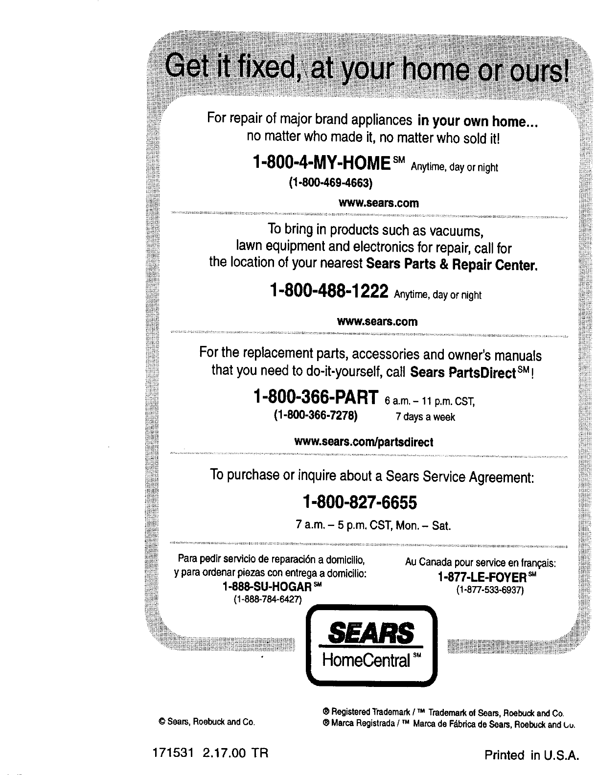 171531 2.17.00 TR Printed in U.S.A.