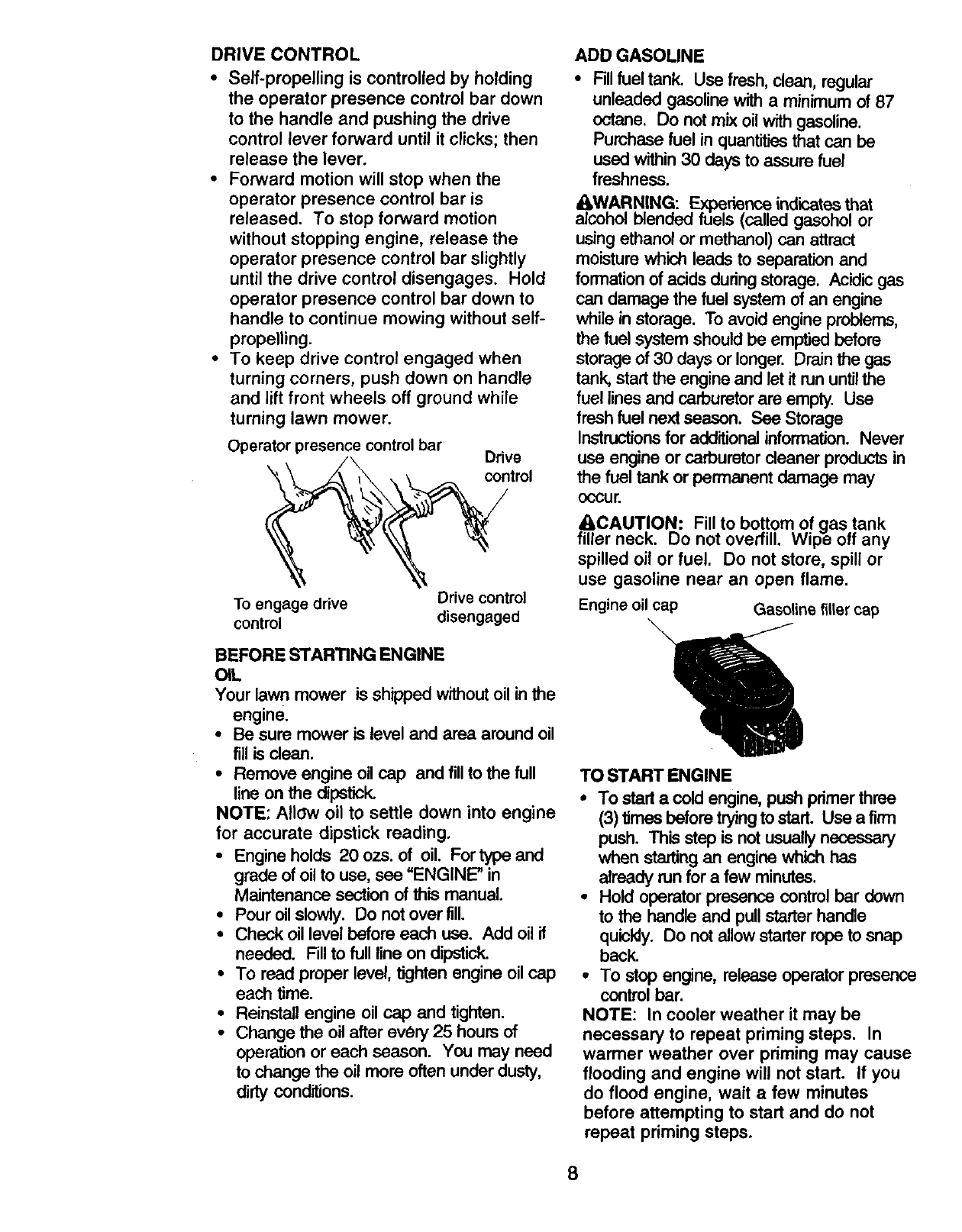 •Check fuel tank before starting engine.