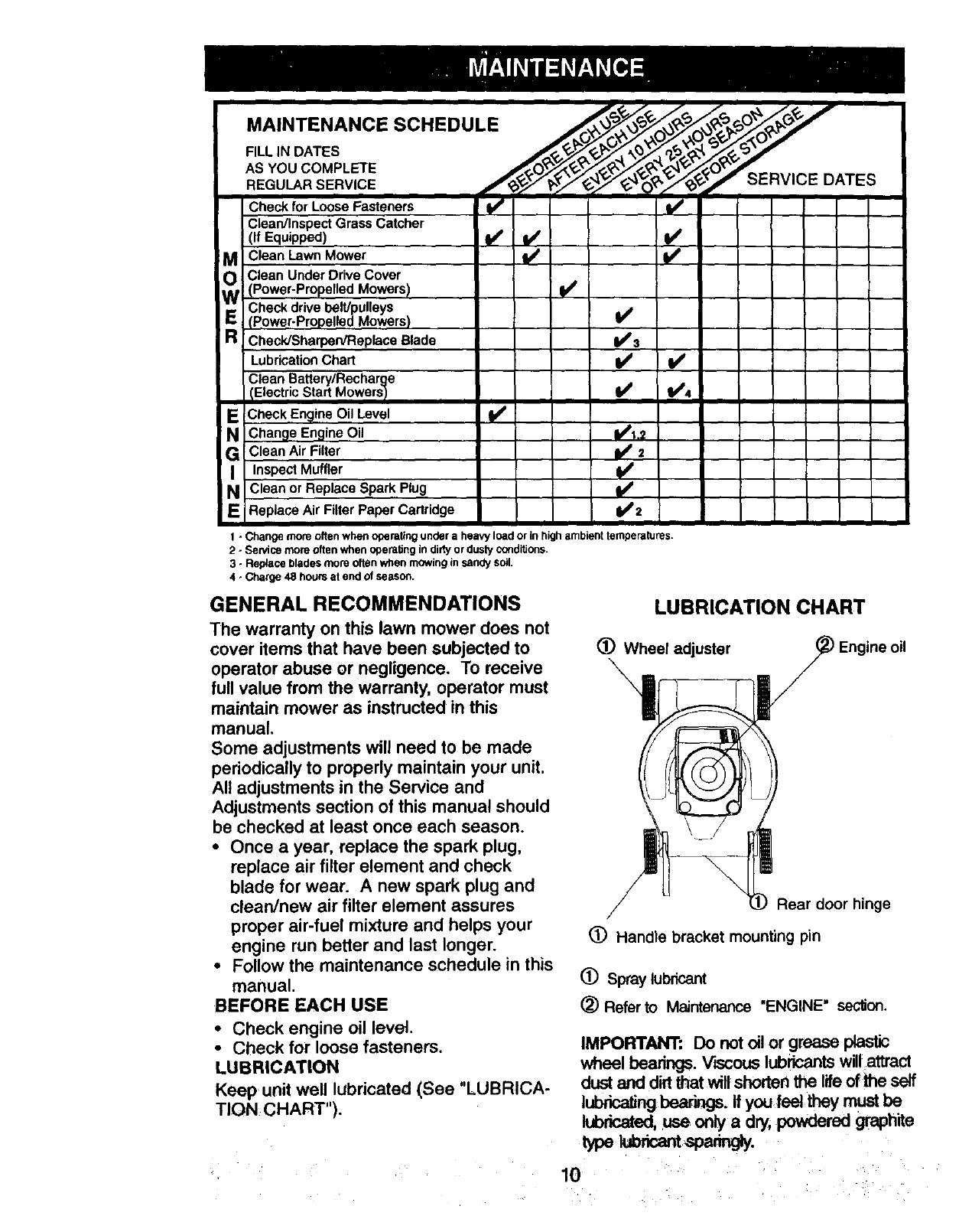 • Expendable items which become worn during normal use, such as rotary mower