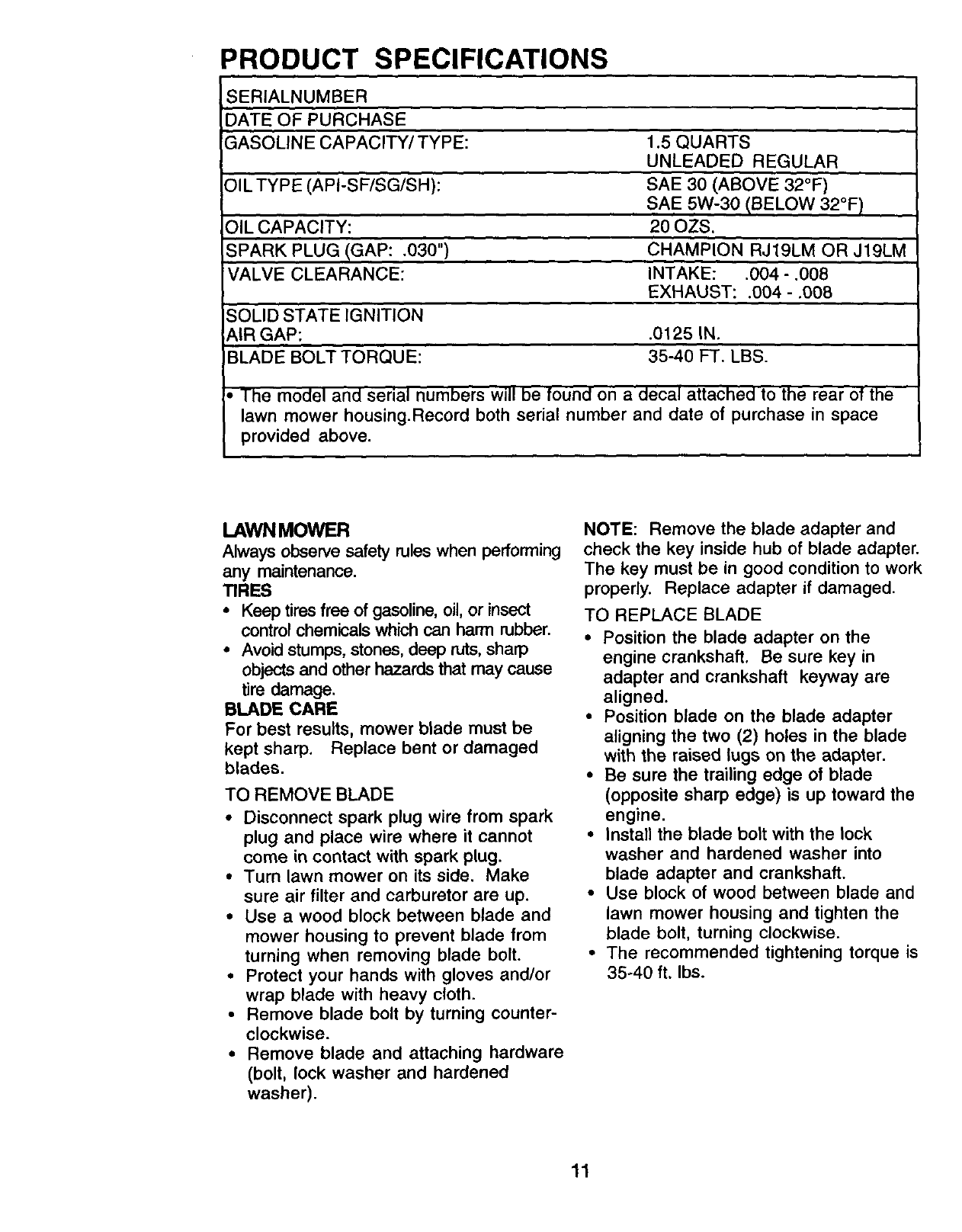 LIMITED TWO YEAR WARRANTY ON CRAFTSMAN POWER MOWER