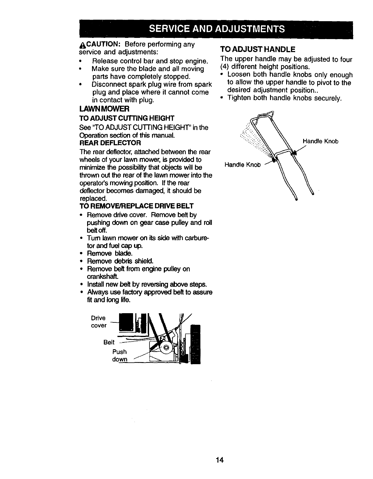 Safety Rules 2Service and Adjustments 14