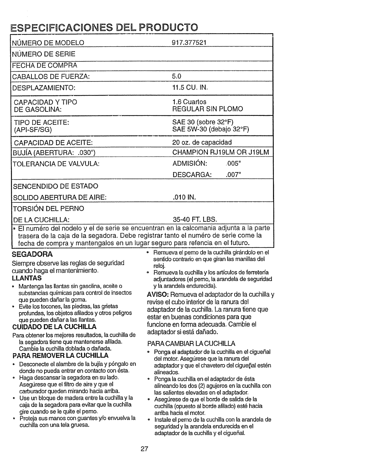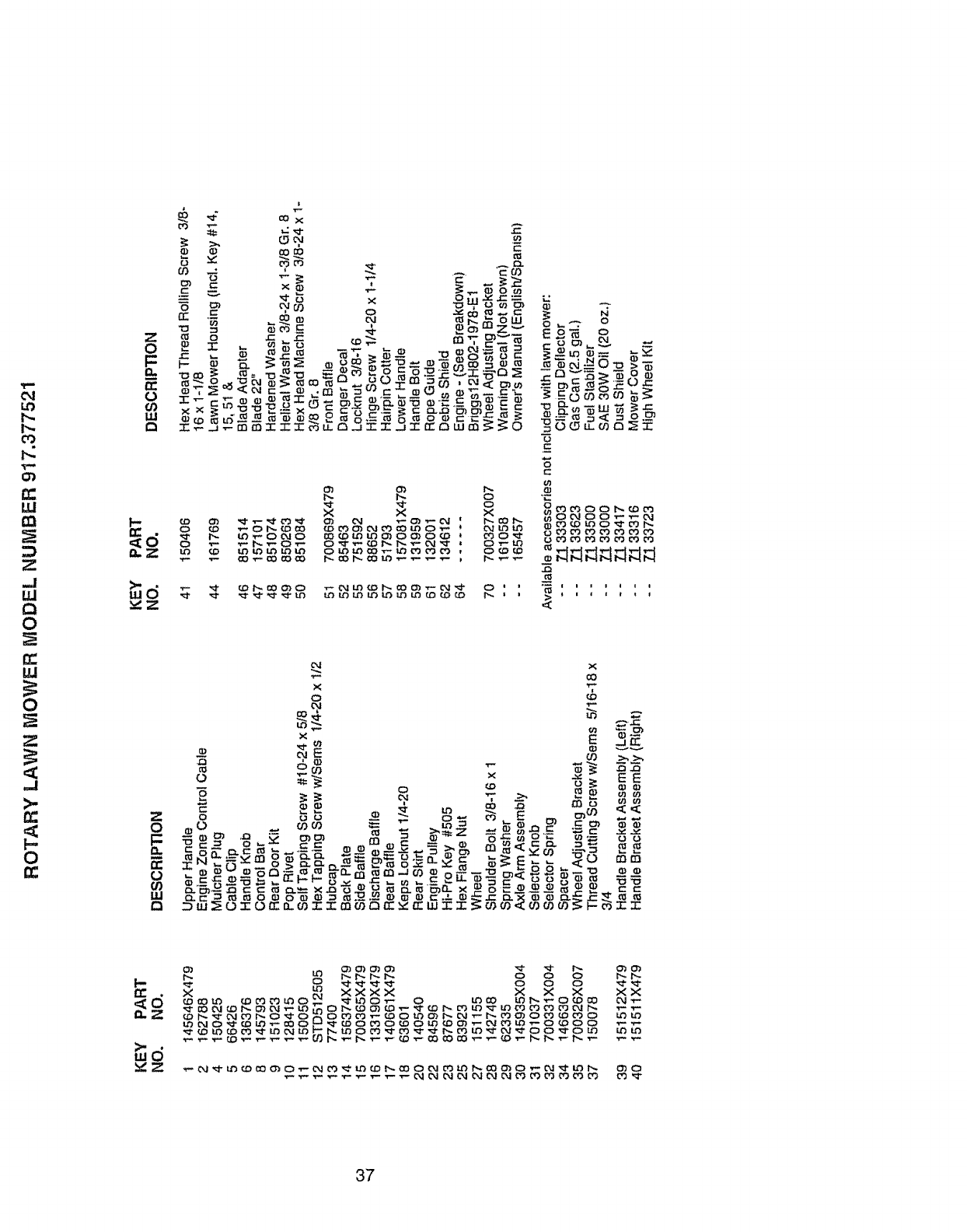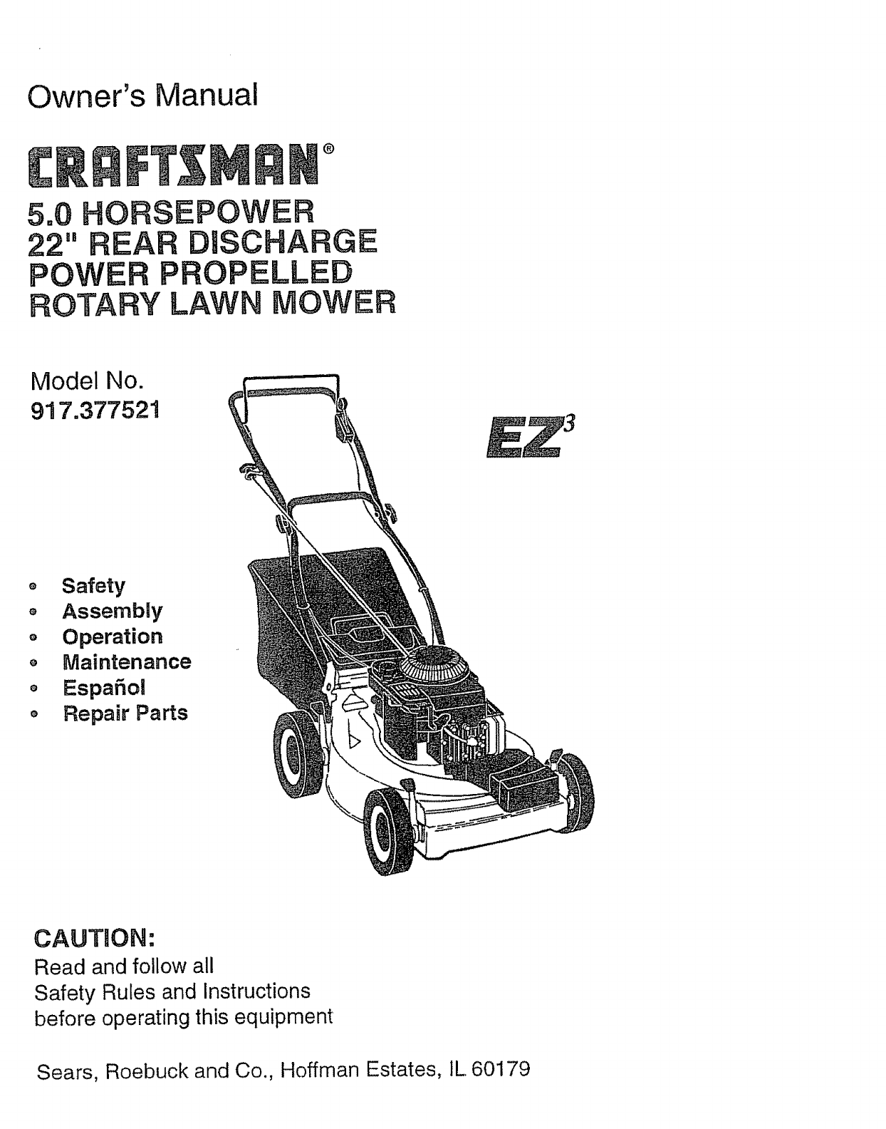 User Manual: Craftsman 917377521 917377521 CRAFTSMAN ROTARY MOWER - Manuals and Guides View the owners manual for your CRAFTSMAN ROTARY MOWER #917377521. Home:Lawn & Garden Parts:Craftsman Parts:Craftsman ROTARY MOWER Manual