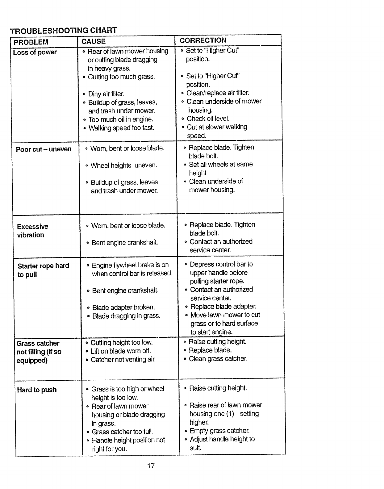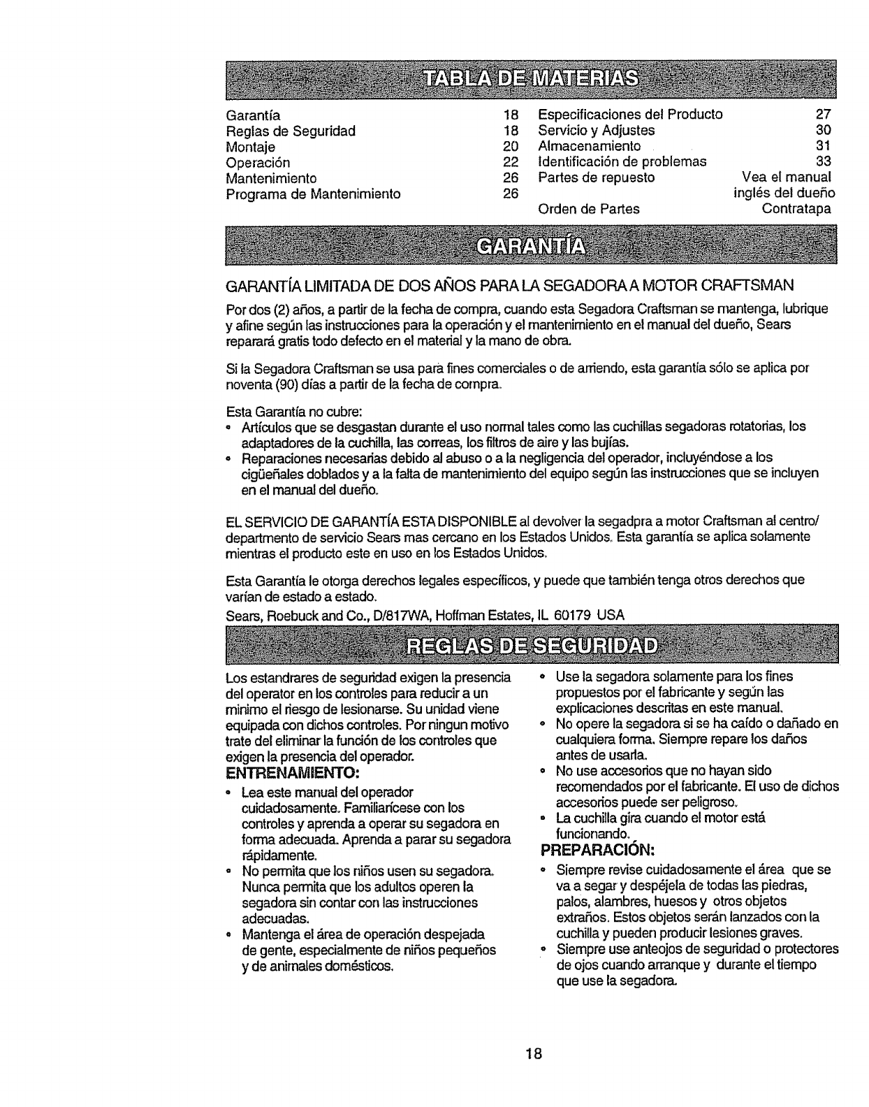Warranty service is available by returning the Craftsman power mower to the nearest