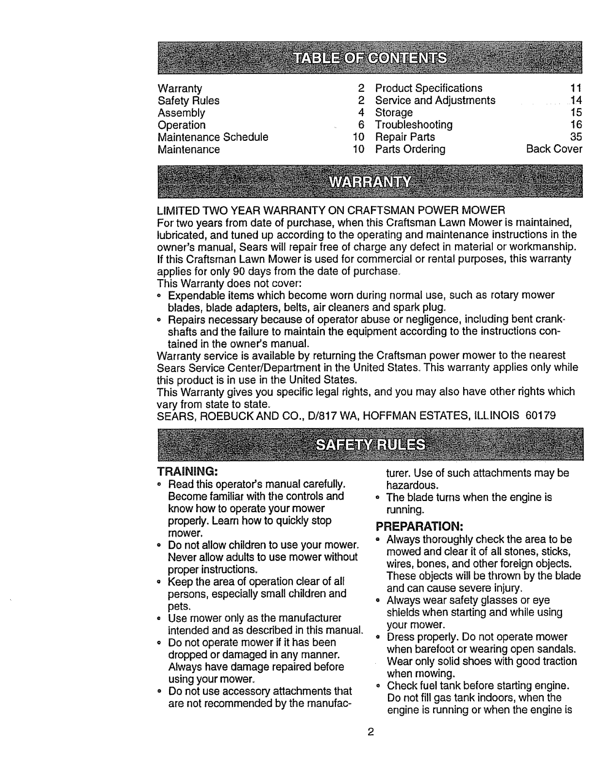 LIMITED TWO YEAR WARRANTY ON CRAFTSMAN POWER MOWER