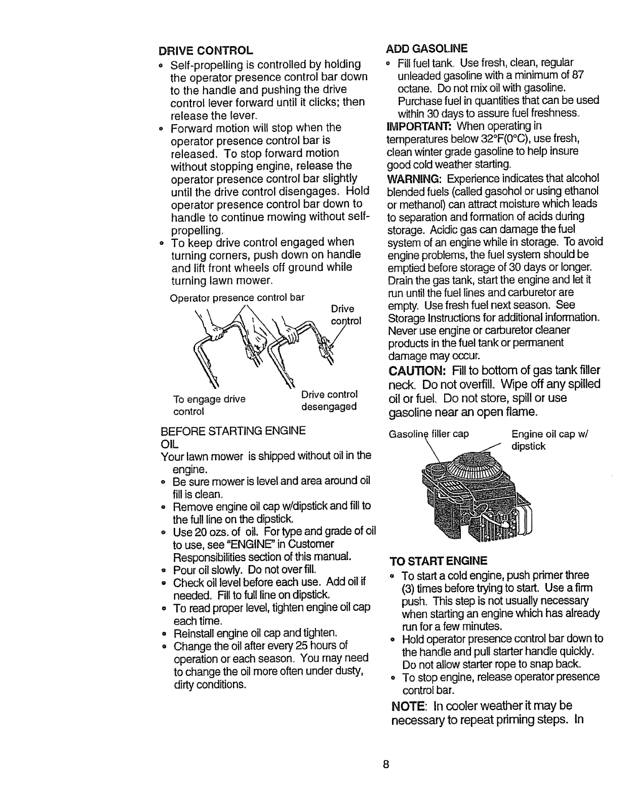 o Check fuel tank before starting engine.