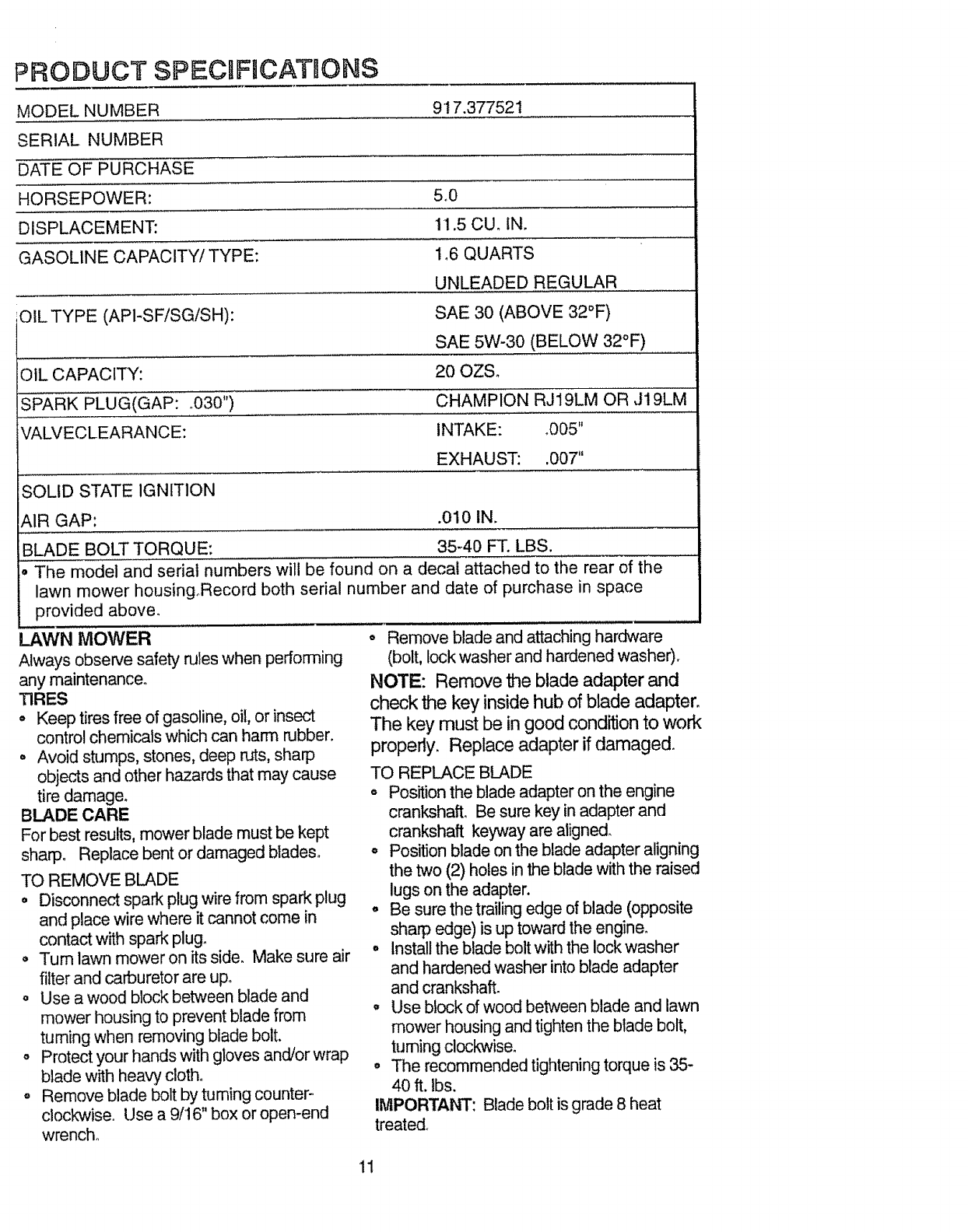 Craftsman 917377521 User Manual ROTARY MOWER Manuals And Guides L0805087